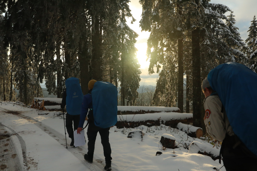 20 Pfadranger haben sich in die Kälte getraut und sind bei Feldberg und Herzogenhorn durch den Schnee gewandert. Los ging es mit einem gemeinsamen Mittagessen und einer Einführung zu hajkrelevanten Themen… Ein bisschen hat es geregnet während wir zusammen zu unserem ersten Übernachtungsplatz gelaufen sind. Unterwegs musste Matthis natürlich noch im Mathisleweiher baden, ein paar andere Jungs, die ihre Badehose dabei hatten, sind auch noch reingesprungen. Am Abend gab es Tortellini mit einer leckeren Soße und natürlich viel warmen Zitronentee am Feuer.
