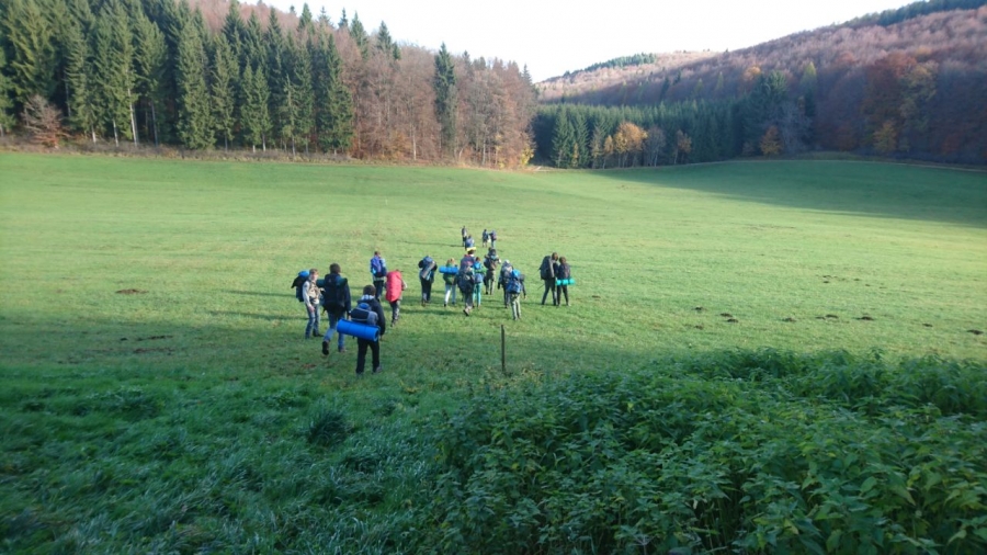 Dazu sind wir zum Lustnauer Bahnhof gelaufen, von dort aus ging es nun weiter nach Metzingen. Hier teilten wir uns nun in die einzelnen Teams auf und liefen los. Am Abend trafen wir dann nach einem Tag voller Höhenmeter auf der Schwäbischen Alb, auf unserer Übernachtungsstelle, eine Wiese der Reutlinger Royal Rangers ein. Hier begangen wir dann erst mit Kochen und dann mit dem Biwak aufbau. Als dann auch das letzte Team eingetroffen und alle satt waren, hatten wir noch einen gemeinsamen Lobpreis Abend mit Andacht um den langenTag ausklingen zu lassen. Da wir alle erschöpft waren gingen wir dann auch sehr früh ins Bett um am nächsten Morgen wieder fit und munter in den Tag zu starten. Der Morgen begann um 7 Uhr noch schnell unser persönliches Material zusammen zu packen und anschließend ein dürftiges Frühstück mit Poridge zu genießen. Frisch gestärkt liefen wir pünktlich los um den Zug in Bad Urach, unserer Endstation zu erreichen.Wieder in Tübingen angekommen verabschiedeten sich die Teams von einander und gingen müde aber wohlbehalten wieder zurück ins warme Zuhause.