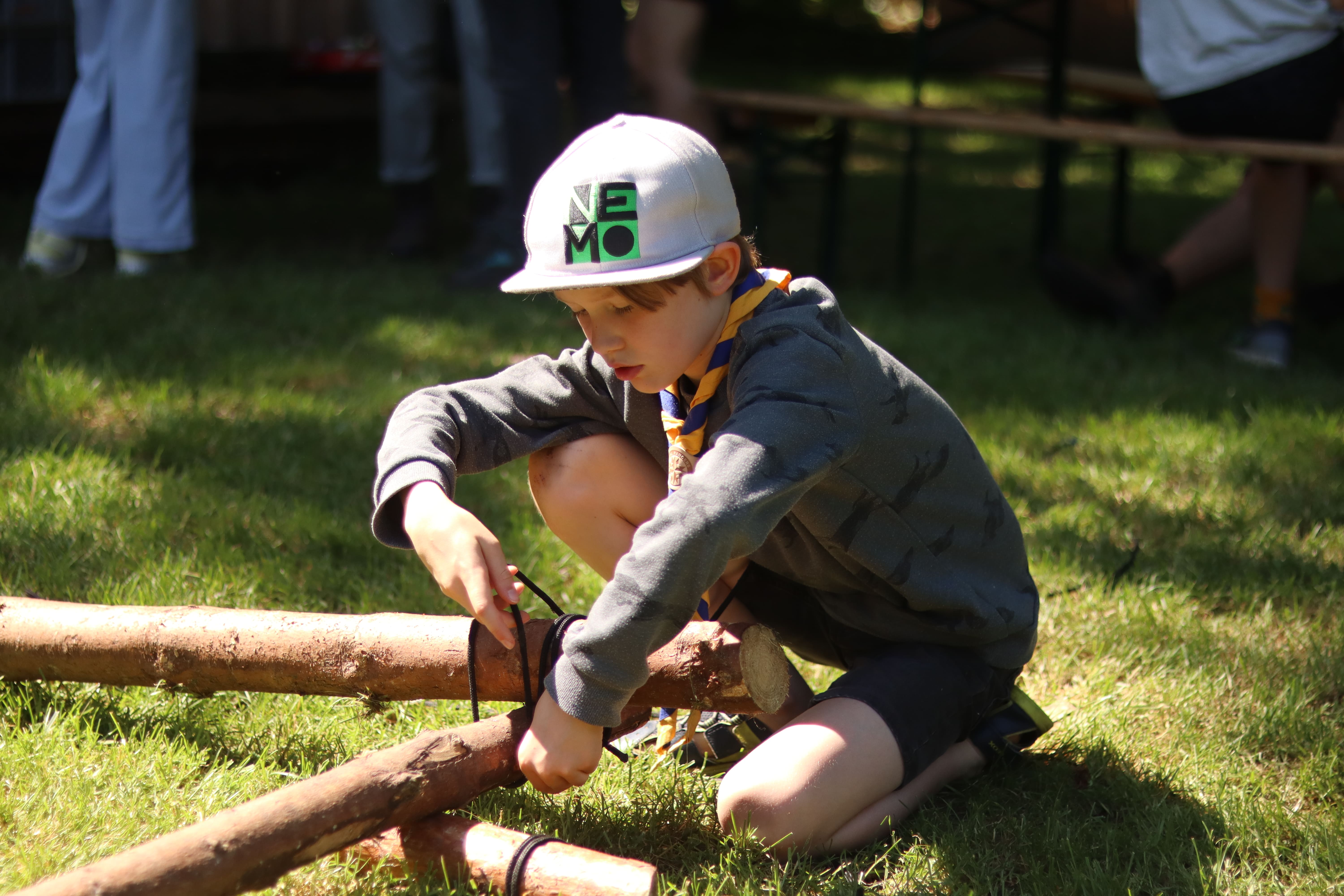 Bevor es im Sommer auf das große Sommercamp geht, gibt es für die Kundschafterstufe noch die Möglichkeit, zu üben. Wie baut man nochmal das Zelt auf? Wie kocht man über offenem Feuer und baut einen Esstisch? All das lernt man auf dem Minicamp das von Freitag bis Samstag über eine Nacht auf der Rangerwiese stattfindet. Für viele Kids ist es das erste Mal das sie auf ein Camp gehen und sind froh es zuvor mal gesehen zu haben. Am Freitag werden die Zelte aufgebaut und nach einer Nacht im Schlafsack und einem leckeren Frühstück gibt es verschiedene Workshops wo die Kids alles zum Thema Camp lernen. Der Abschluss ist dann am Nachmittag mit allen Eltern zusammen, die die Bauten der Kids bestaunen und nebenbei einen leckeren Kaffee und Kuchen genießen können.
