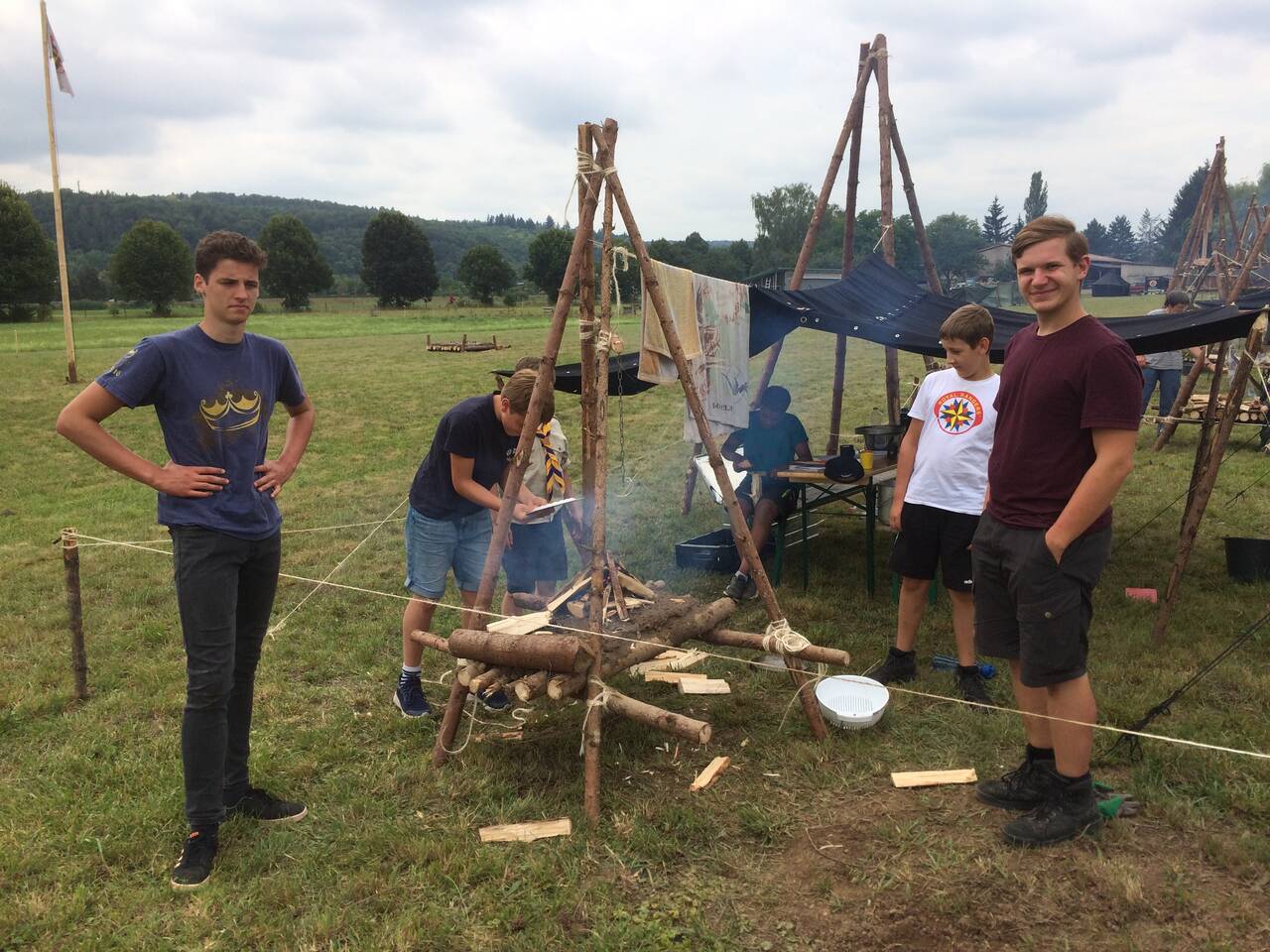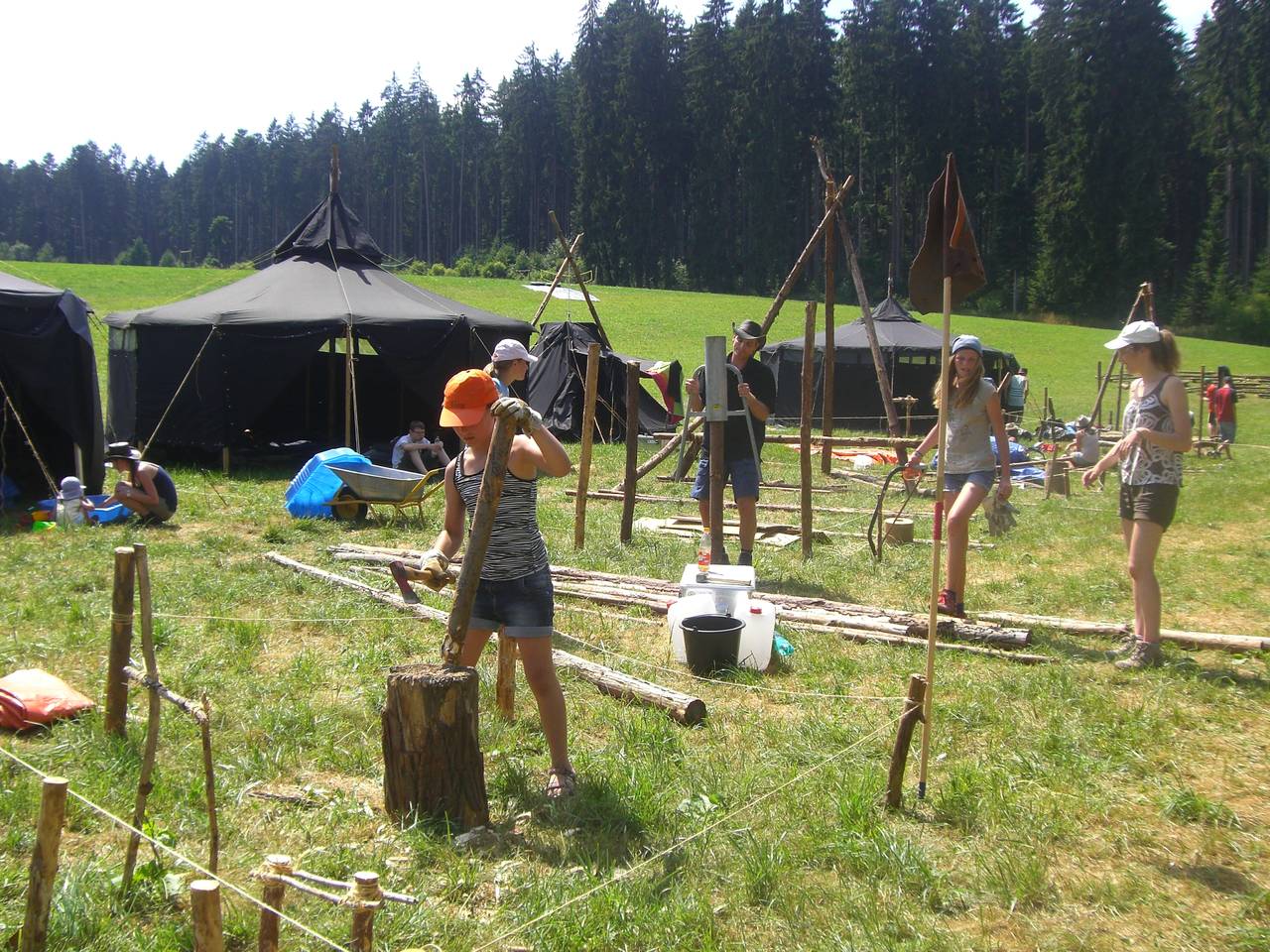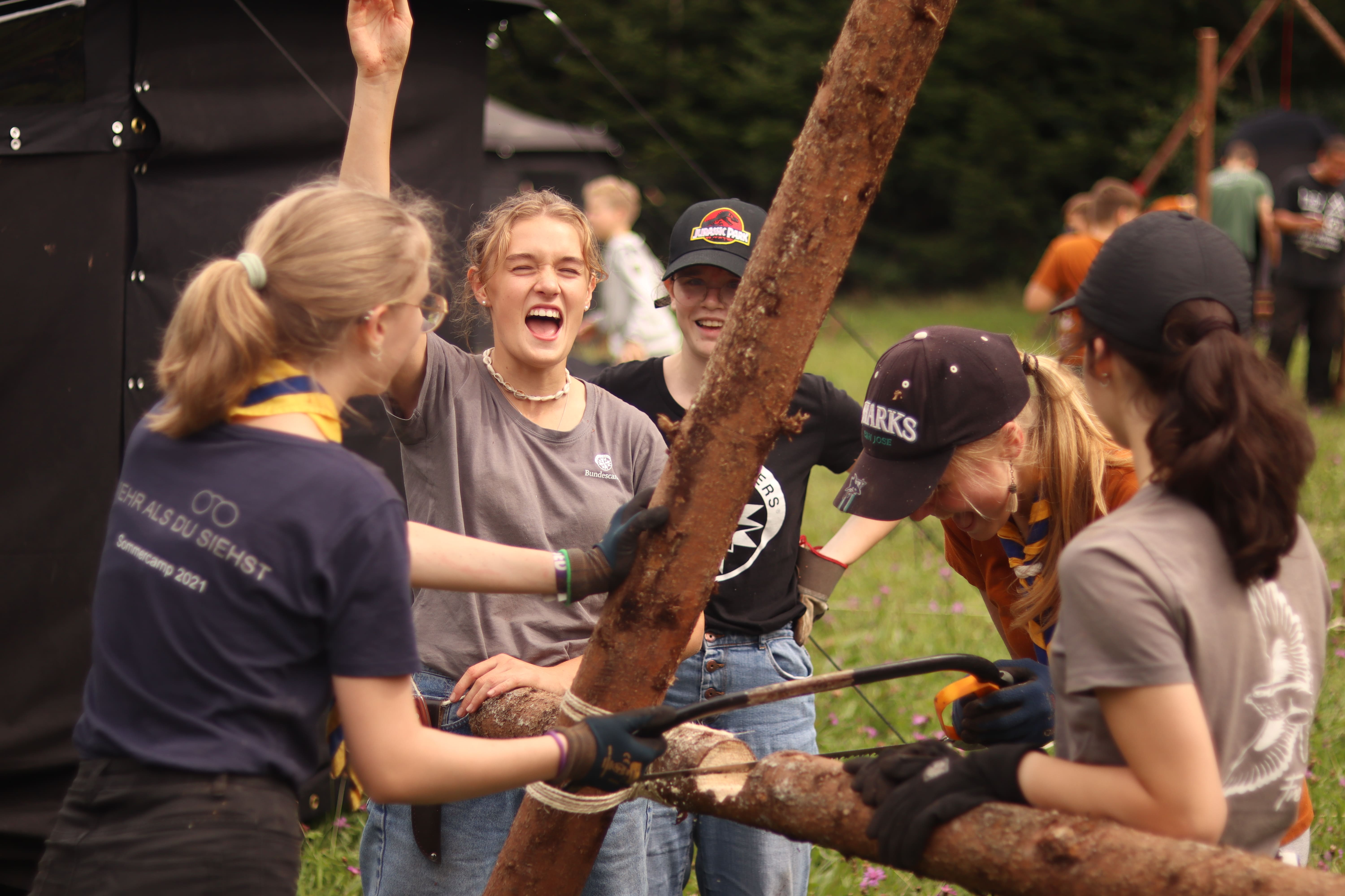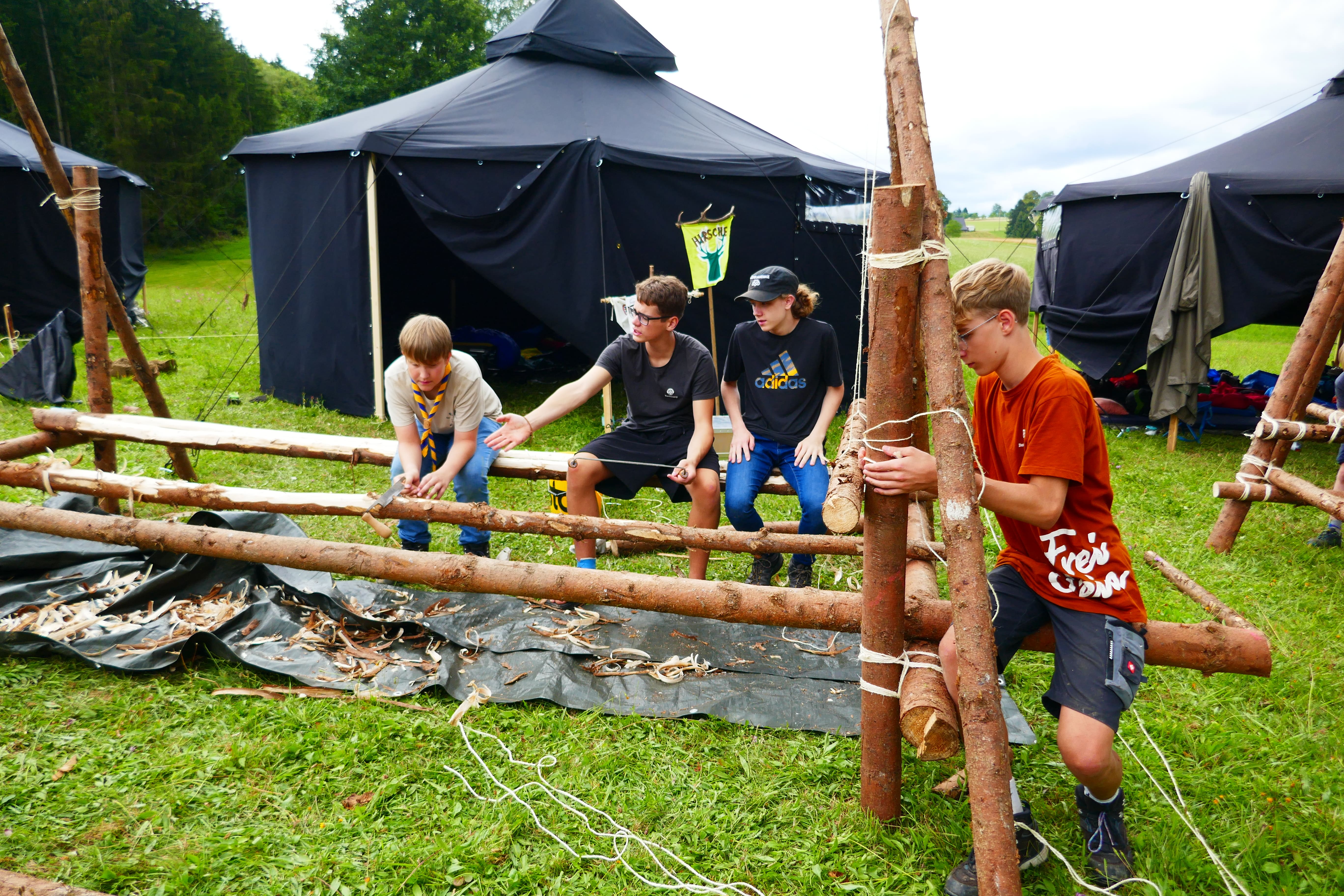 Das Highlight für die Kundschafter- und Pfadfinderstufe ist das Sommercamp. Einmal im Jahr fahren wir zusammen auf eine große Wiese im Schwarzwald oder auf der schwäbischen Alb, schlagen dort unsere Zelte auf und bauen aus Holz einen Esstisch sowie eine Kochstelle und ein Eingangstor zu jedem Teambereich. Das Sommercamp ist oft mit anderen Stämmen zusammen, so das wir immer neue Leute kennen lernen.