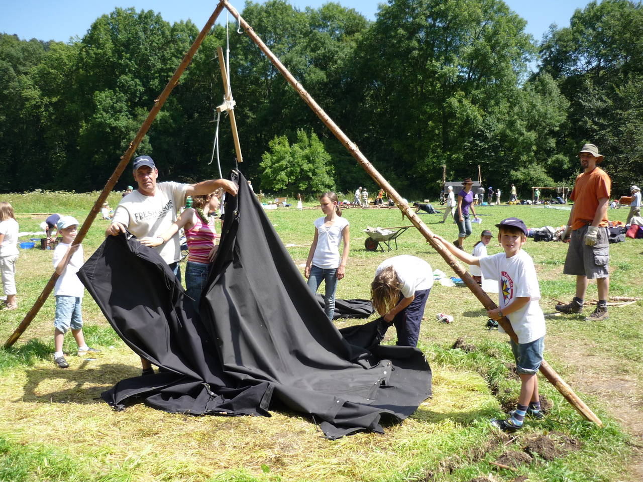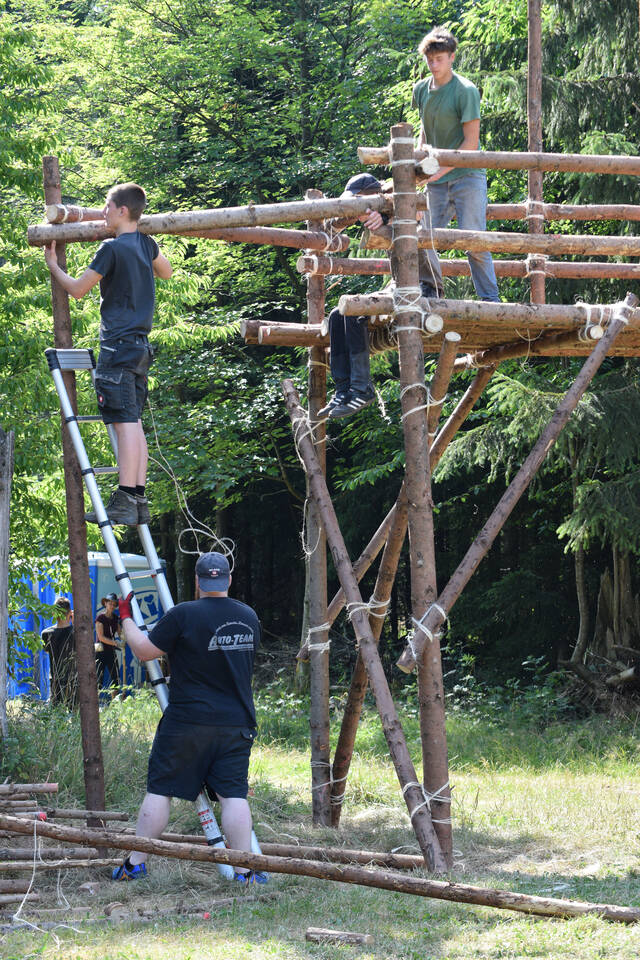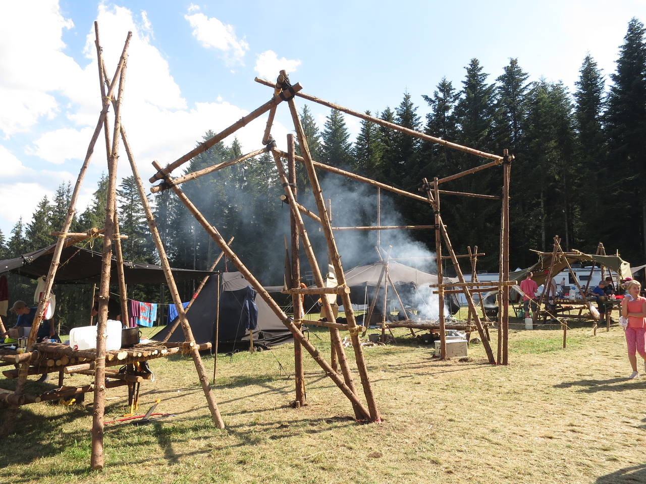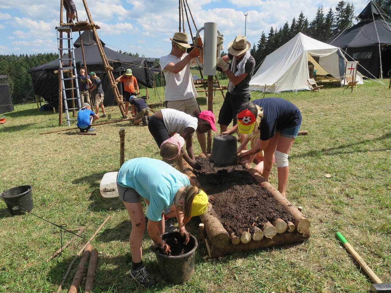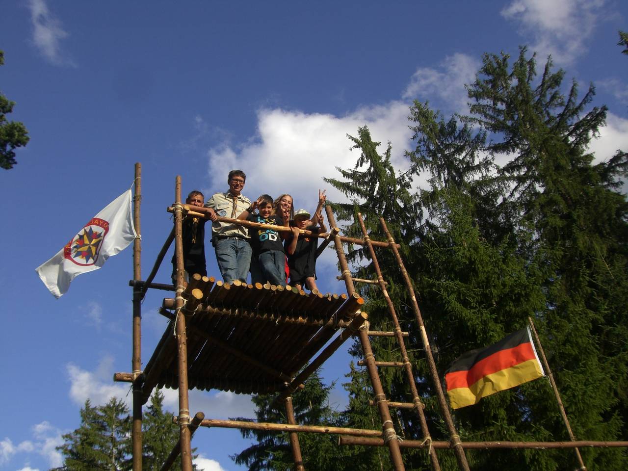 Das Highlight für die Kundschafter- und Pfadfinderstufe ist das Sommercamp. Einmal im Jahr fahren wir zusammen auf eine große Wiese im Schwarzwald oder auf der schwäbischen Alb, schlagen dort unsere Zelte auf und bauen aus Holz einen Esstisch sowie eine Kochstelle und ein Eingangstor zu jedem Teambereich. Das Sommercamp ist oft mit anderen Stämmen zusammen, so das wir immer neue Leute kennen lernen.