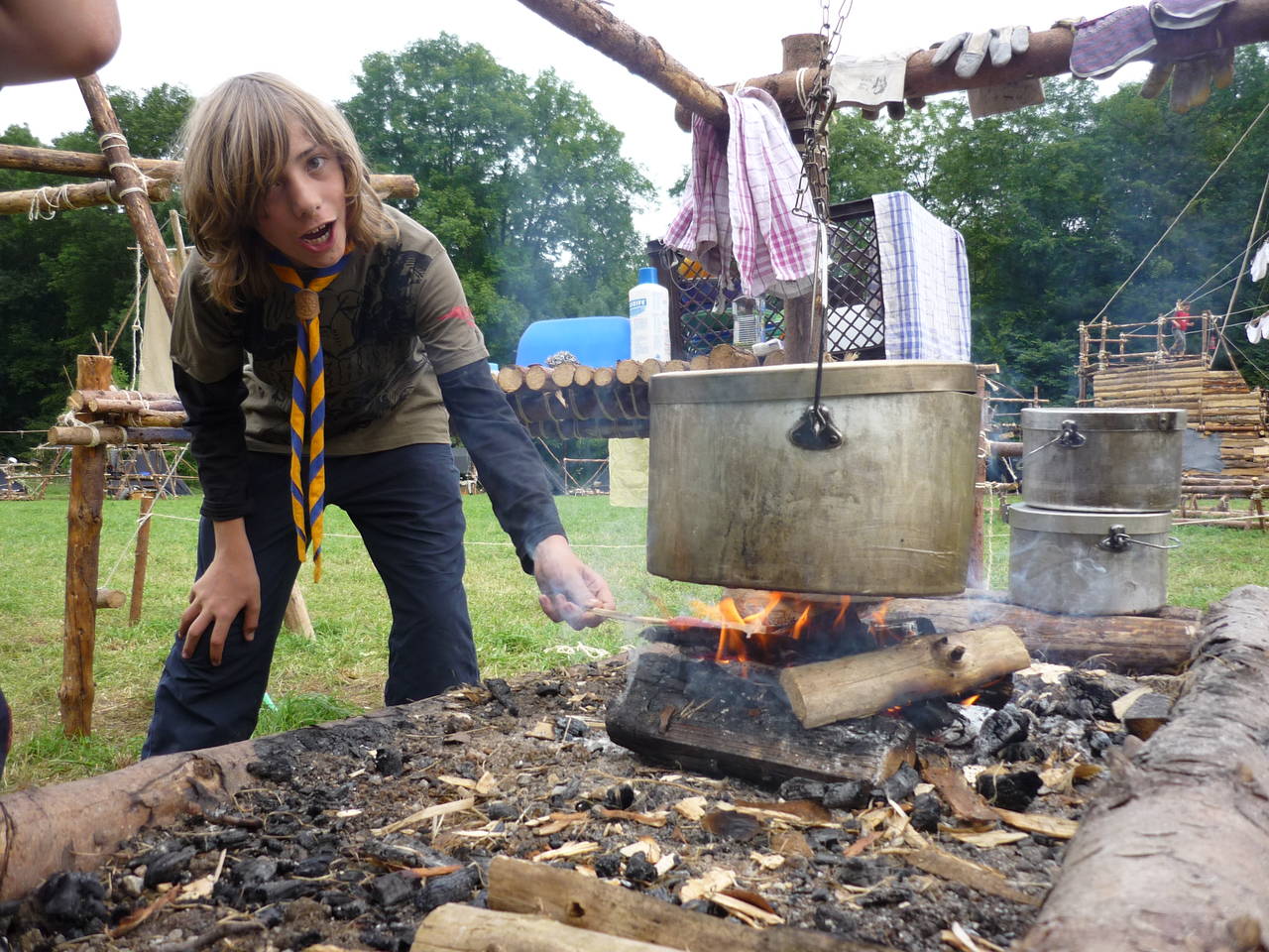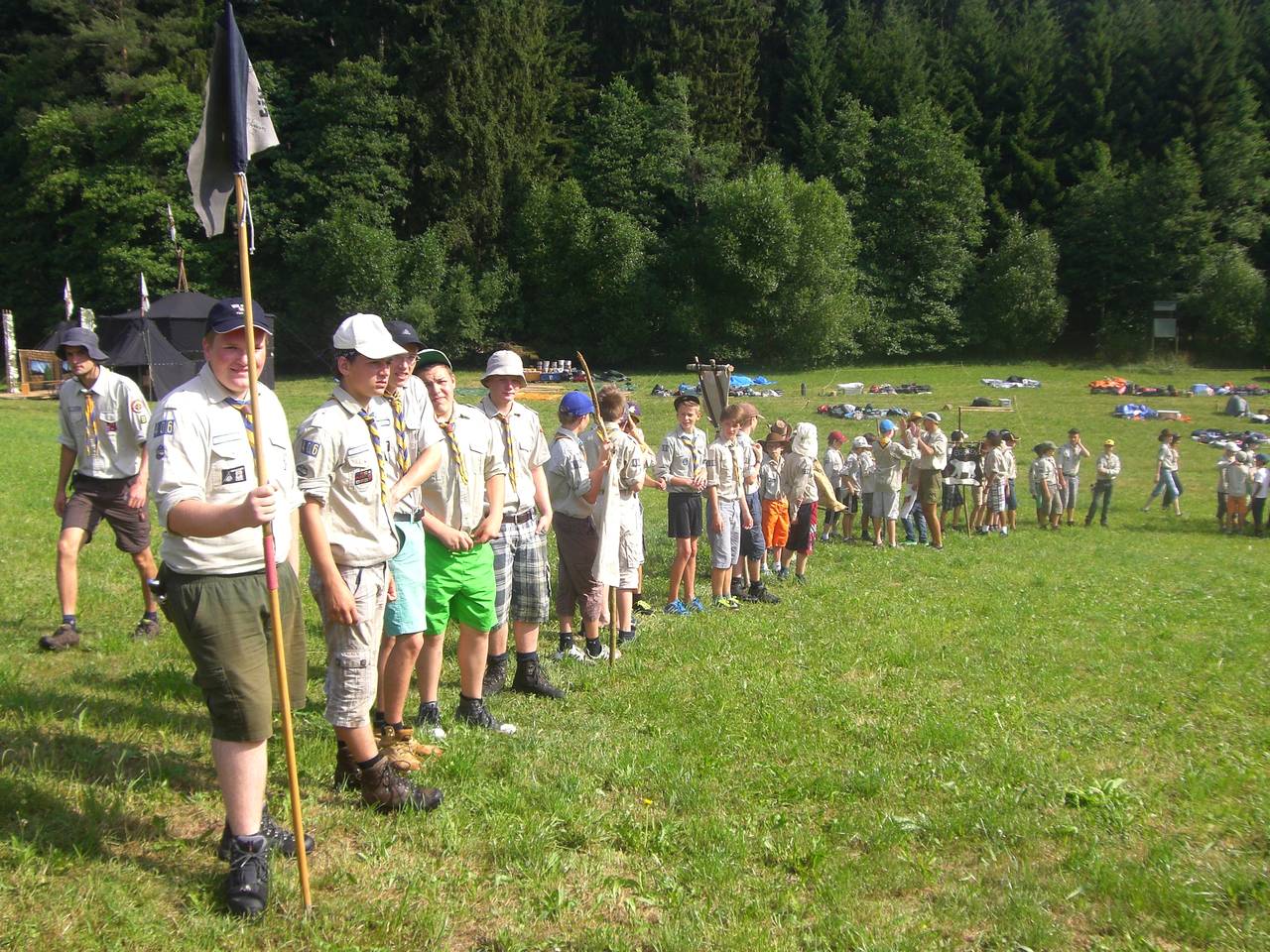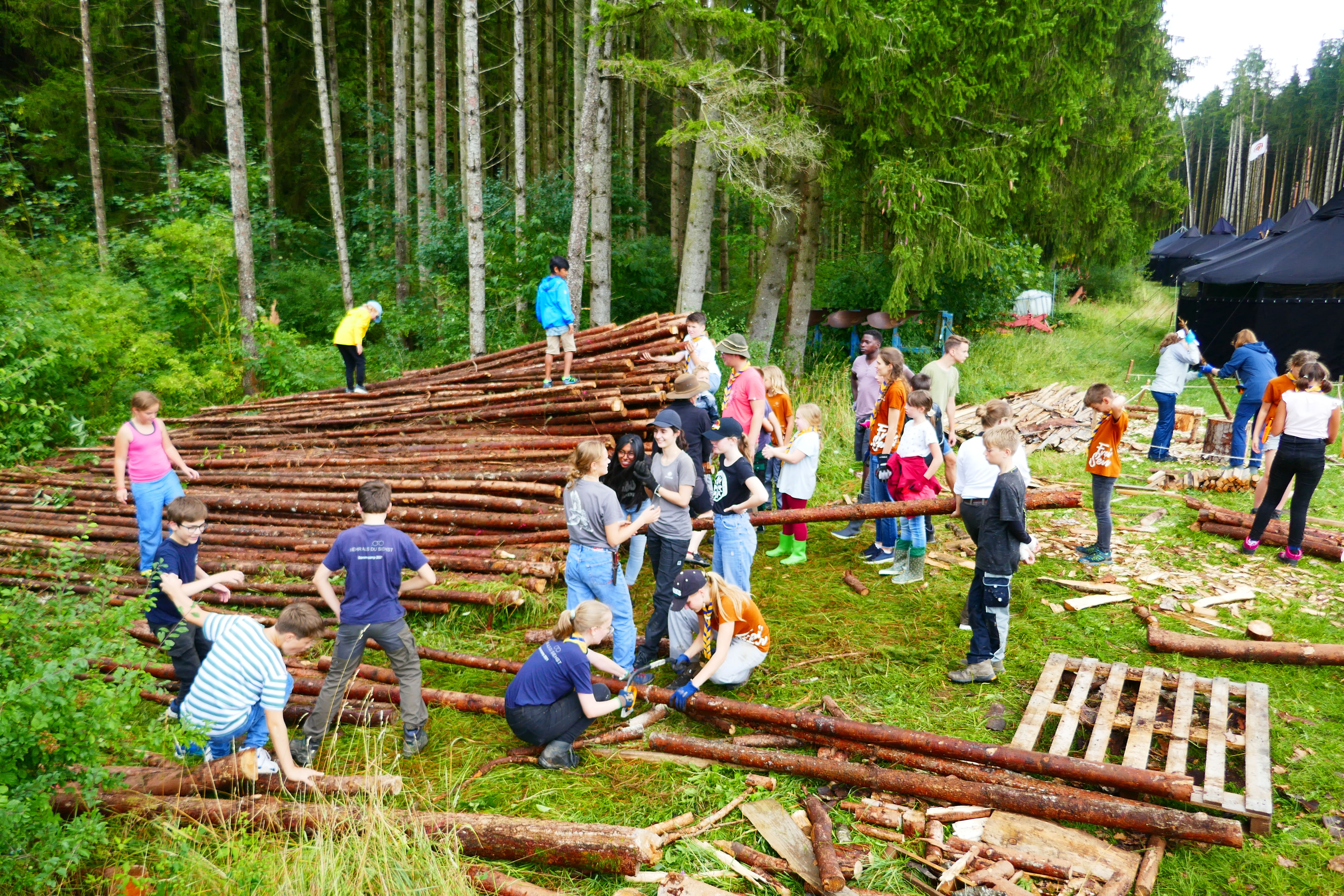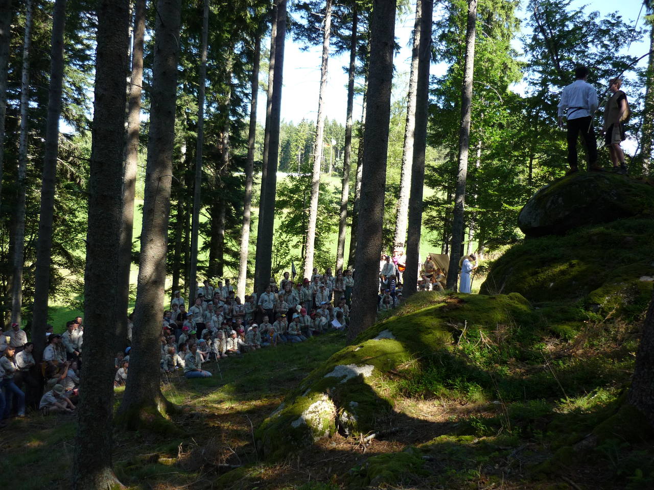 Das Highlight für die Kundschafter- und Pfadfinderstufe ist das Sommercamp. Einmal im Jahr fahren wir zusammen auf eine große Wiese im Schwarzwald oder auf der schwäbischen Alb, schlagen dort unsere Zelte auf und bauen aus Holz einen Esstisch sowie eine Kochstelle und ein Eingangstor zu jedem Teambereich. Das Sommercamp ist oft mit anderen Stämmen zusammen, so das wir immer neue Leute kennen lernen.