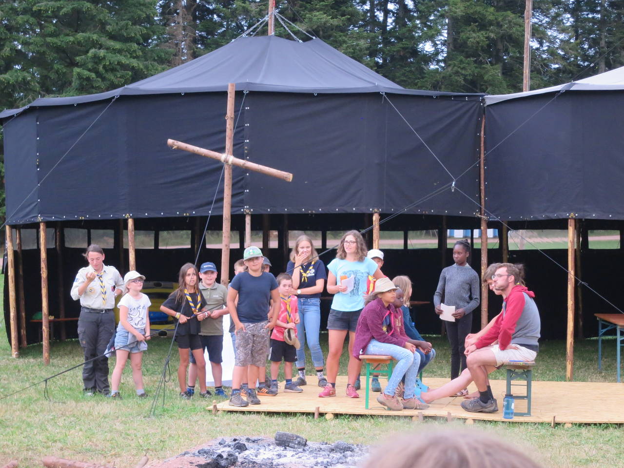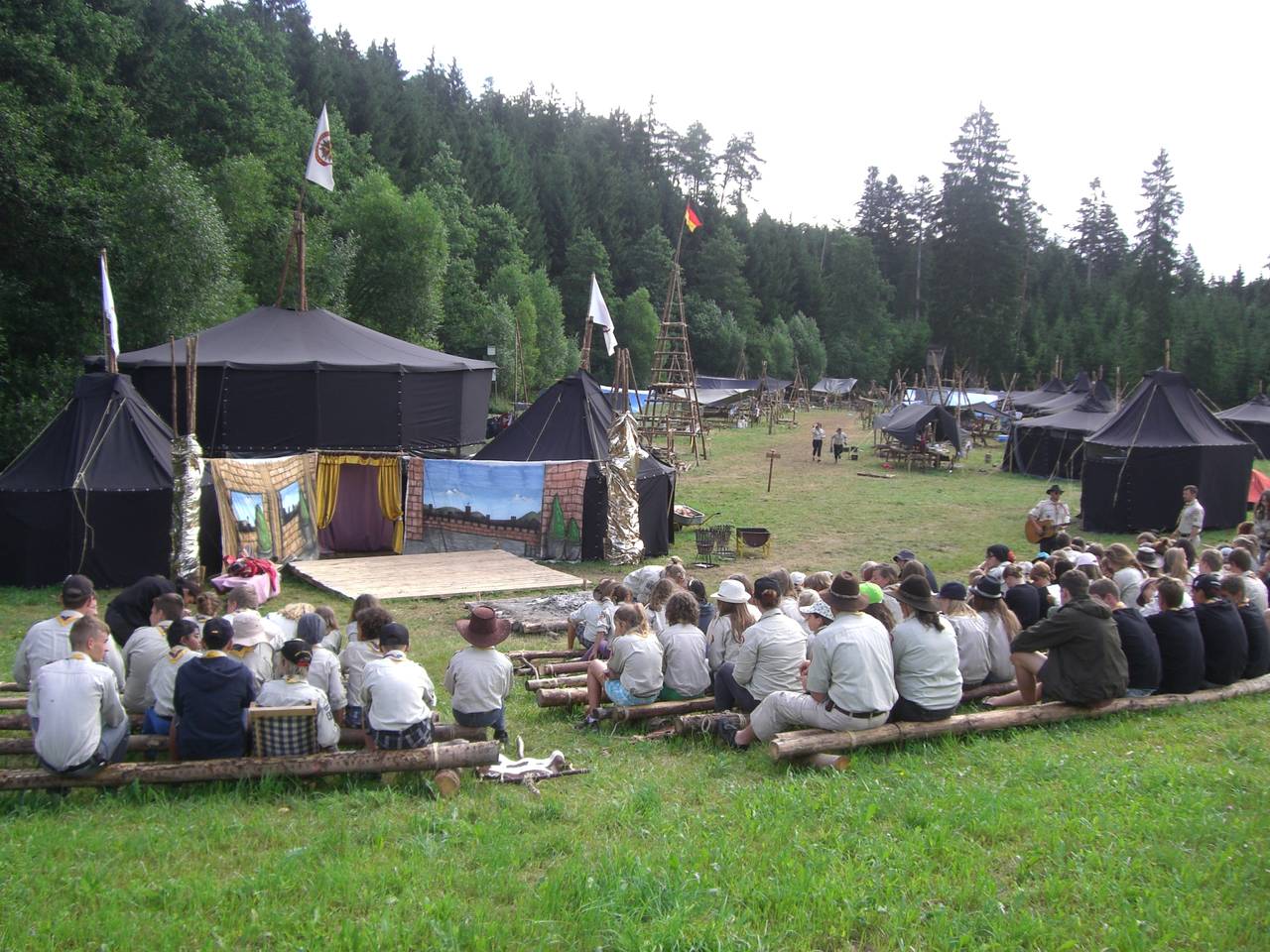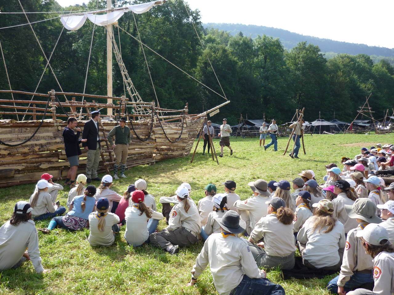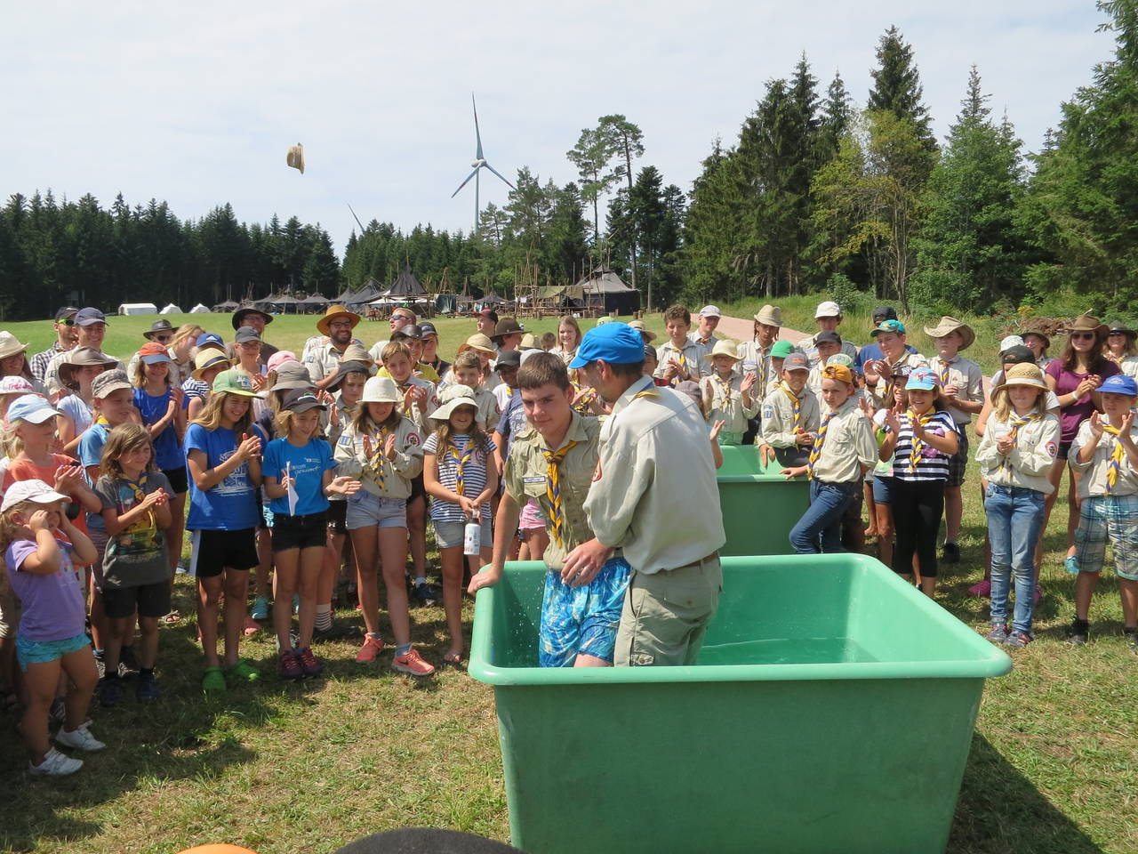 Das Highlight für die Kundschafter- und Pfadfinderstufe ist das Sommercamp. Einmal im Jahr fahren wir zusammen auf eine große Wiese im Schwarzwald oder auf der schwäbischen Alb, schlagen dort unsere Zelte auf und bauen aus Holz einen Esstisch sowie eine Kochstelle und ein Eingangstor zu jedem Teambereich. Das Sommercamp ist oft mit anderen Stämmen zusammen, so das wir immer neue Leute kennen lernen.