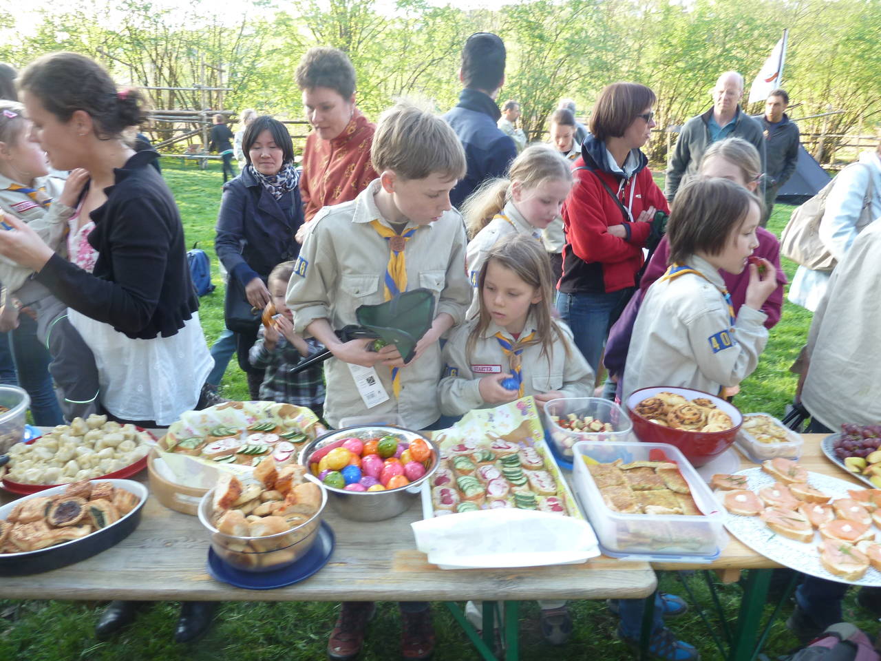 Auf unserer großen Osterfeier die wir gemeinsam mit allen Stämmen gestalten und feiern gibt es für jedes Alter eine Menge zu erleben. Ob verschiedene Spiele rund um das Osterei, ein selbst auf dem Feuer gebackenes Osterlamm oder natürlich das Theaterstück, welches die Geschichte rund um Jesu Kreuzigung und Auferstehung an Ostern erzählt.