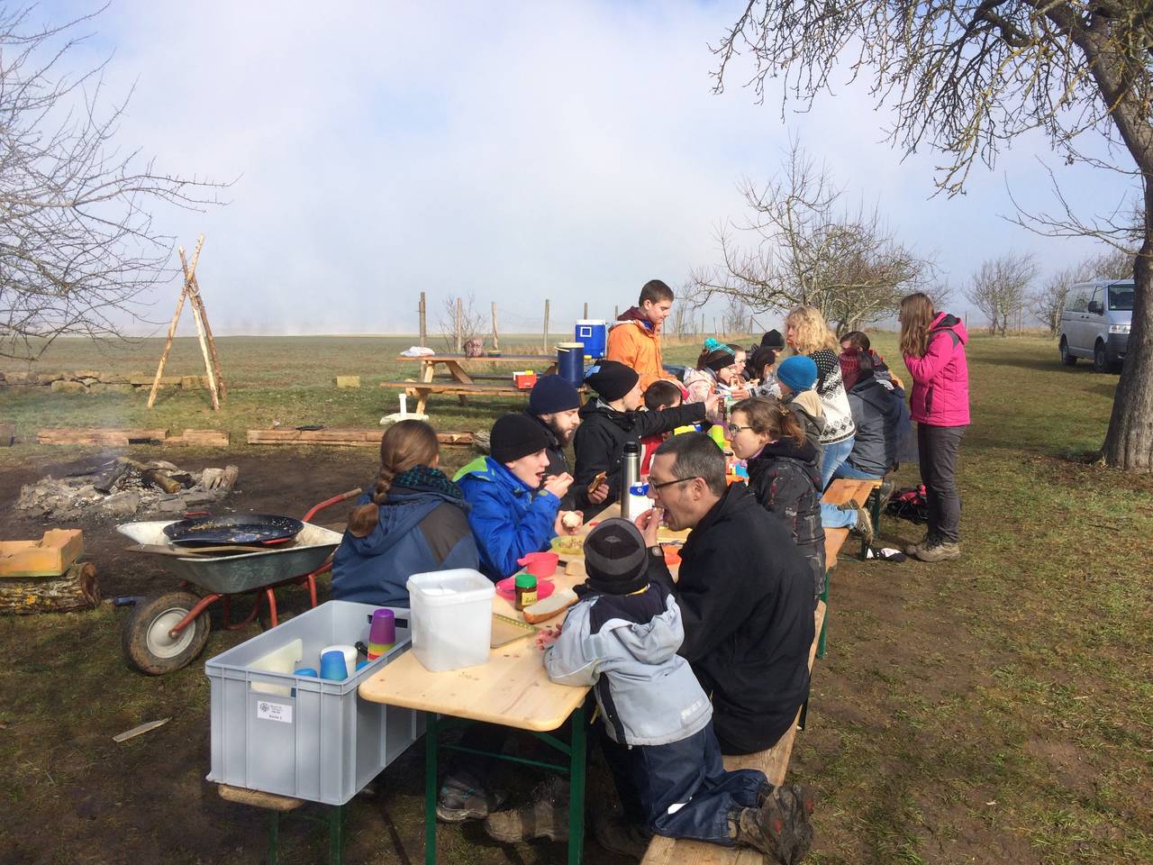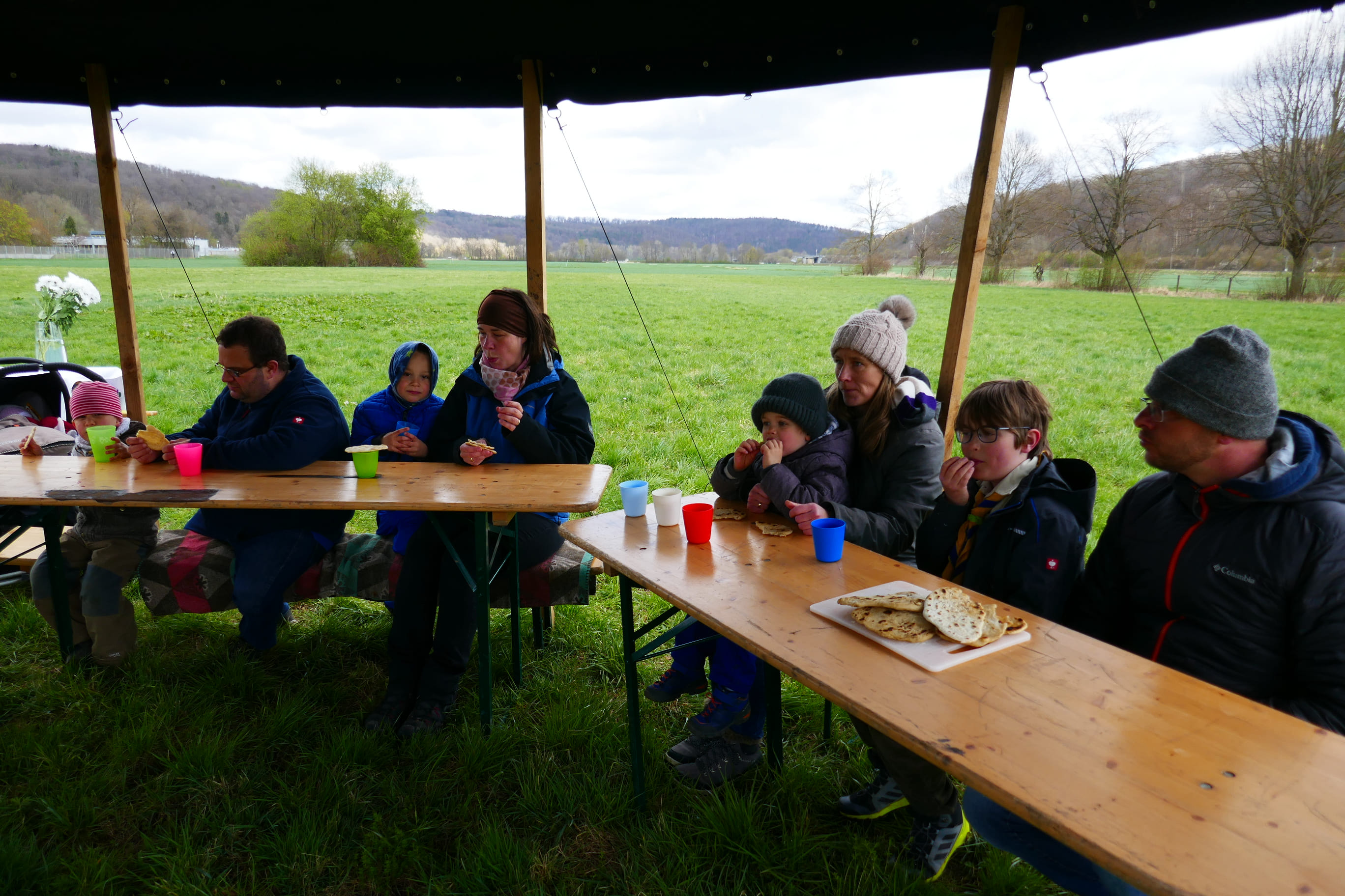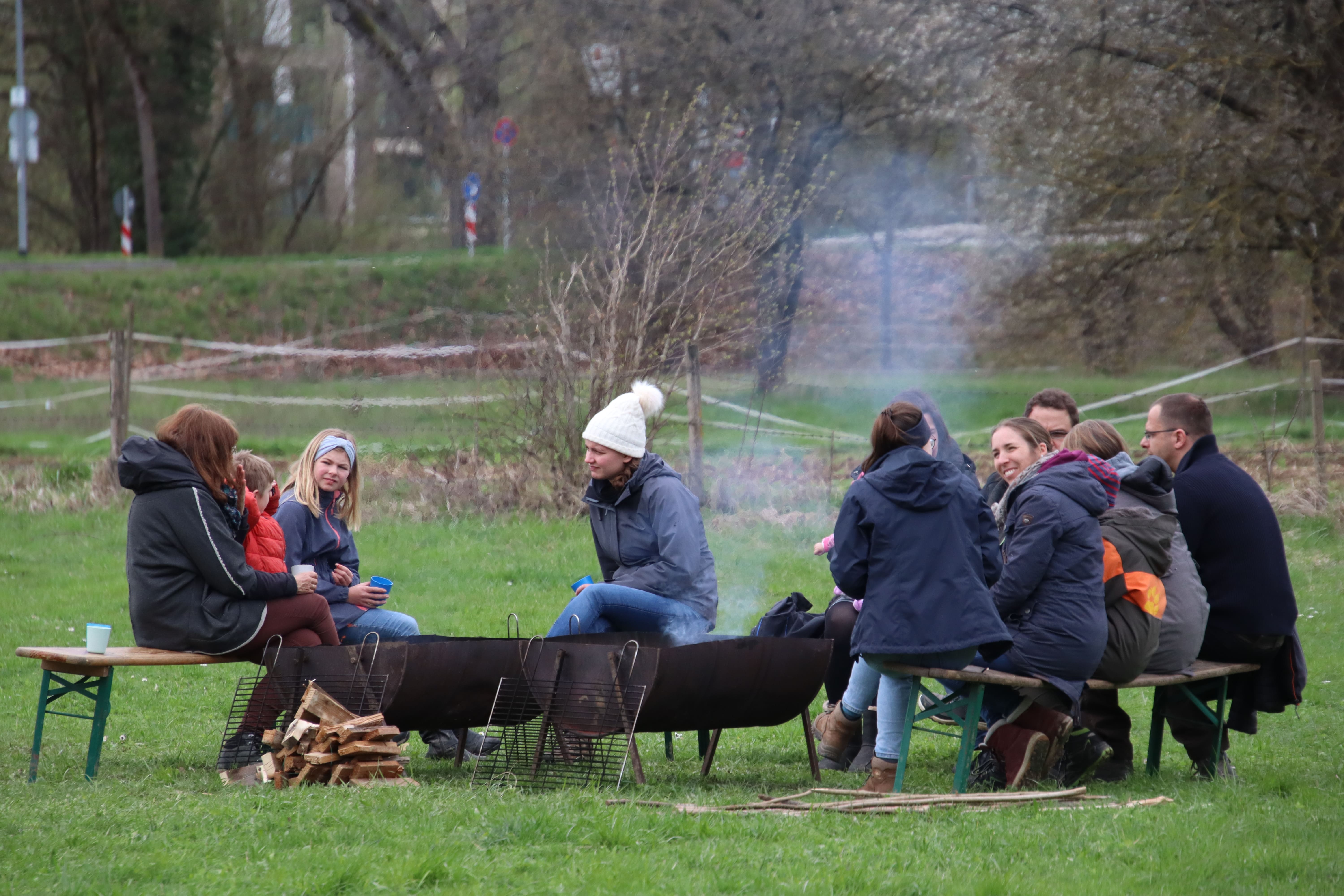 Am Lagerfeuer mit leckeren Maultaschenburgern findet die Osterfeier ihr Ende.