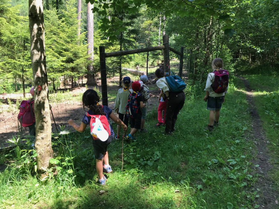 Sie waren aus Tübingen, Herrenberg und Rottenburg angereist, um gemeinsam Tiere des Waldes zu entdecken. Dazu eignete sich der dortige „Walderlebnispfad“ hervorragend. Zwischen Bäumen und Sträuchern konnten wir geschnitzte Tiere suchen, ein Tierrätsel lösen und uns durch den Dschungelpfad kämpfen. Am Wildgehege warteten wir gespannt, ob irgendwo Wildschweine auftauchen. Zurück am Spielplatz hatten die Leiter waldpädagogische Spiele wie z.B. „Fledermaus und Motte“ oder „Vogelfüttern“ vorbereitet, bei denen wir Vorgänge aus der Natur spielerisch umsetzen konnten. Natürlich durfte bei dem heißen Wetter ein Wasserspiel nicht fehlen und Klassiker wie Wikingerschach und Fußball waren ebenfalls angeboten. Für das Mittagessen brannten zwei schöne Feuer, über denen wir unsere mitgebrachten Würstchen grillten.