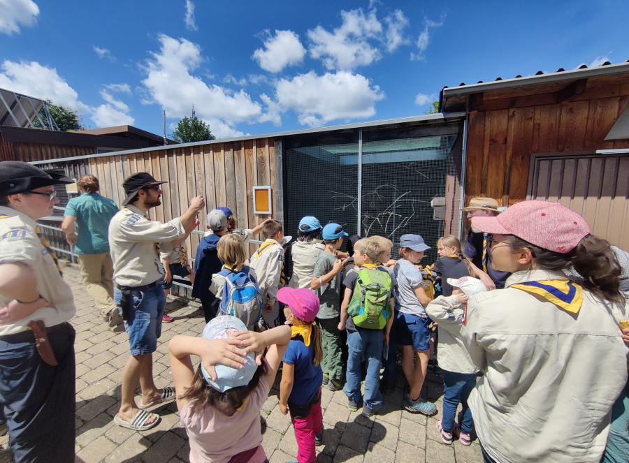 Um 10 Uhr hatten wir unseren gemeinsamen Start und dann ist die Gruppe 1 auch gleich schon losgezogen zum Vogelschutzzentrum das ca 25 Min. von unserer Wiese entfernt ist. Nacheinander hatten die 3 Gruppen die Möglichkeit eine 1 stündige Führung im Vogeschutzzentrum mitzumachen. Dort haben wir viel über die heimischen Vogelarten gelernt, uns die verschiedenen Schutzprojekte z.B. des heimischen Rebhuhns erklären lassen und hatten auch teils die Möglichkeit bei der Fütterung von Jungvögeln zuzuschauen. Ausserdem hat es mich sehr beeindruckt, dass allein in diesem Vogelschutzzentrum jährlich zwischen 1000-1500 verletzte und zu früh aus dem Nest gefallene Vögel abgegeben und registriert werden um sie möglichst bald wieder in die Natur zu entlassen. Drumherum hatten wir auf der Lagerwiese viele Angebote zum Spielen und es konnten tolle Dinge wie ein Insektenhotel gebastelt werden. Dabei hatten die Kids sichtlich Spaß! Das leibliche Wohl kam natürlich auch nicht zu kurz, beim grillen und vertilgen von Doppelkeksen konnten wir eine schöne Pause machen. Der absolute Lieblingsplatz war aber für die meisten Kids natürlich auch unser toller Bach in dem ausgelassen getobt wurde. Eine Mega Wasserschlacht mit den Juniorleitern hat es natürlich auch gegeben und da war die Freude auf beiden Seiten sichtlich groß und an diesem Tag war wirklich jeder um eine kleine oder größere Abkühlung dankbar. Zu guter letzt hatten wir noch eine Abschlusszeit mit Liedern, einer Andacht und dem hochleben eines Geburtstagskindes und dann haben sich die einzelnen Gruppen um ca 16 Uhr wieder auf die Heimreise begeben. Ich haben an diesem Tag in viele Lachenden Gesichter und strahlende Augen bei Kindern und Leitern gesehen und finde wir hatten eine wirklich gelungene Zeit als Forscher zusammen!