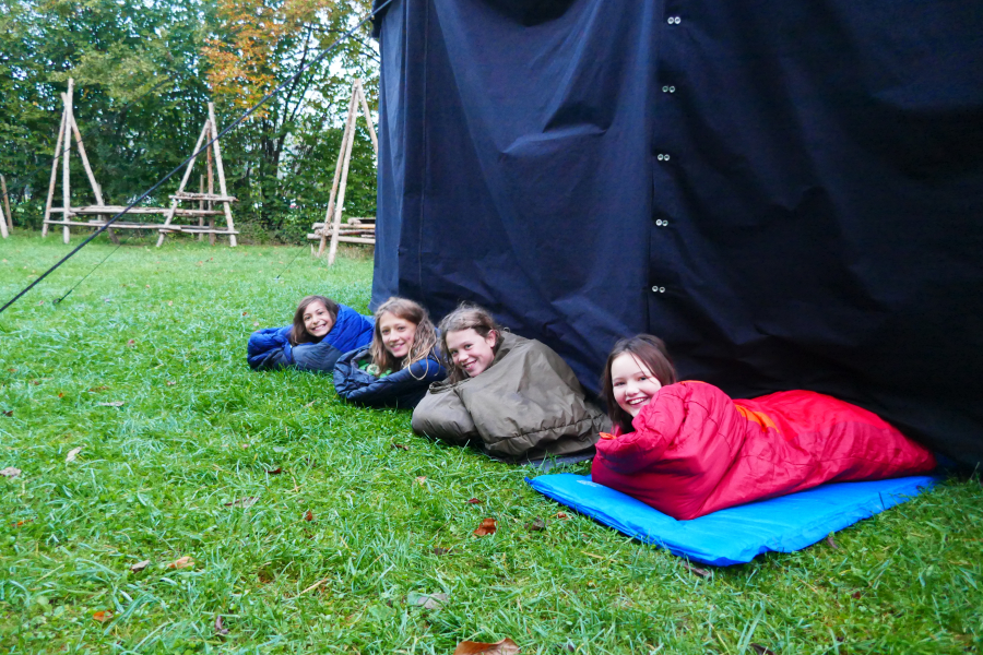 Von Freitag auf Samstag übernachteten die Kundschafter auf der Rangerwiese. Zuerst wurden die Zelte aufgebaut und nach einem gemeinsamen Abendessen ging es dann weiter mit einem Nachtgeländespiel. Dabei musste Schmuggelware (= Kaubonbons) von einem Ort zum anderen transportiert werden. Die Herausforderung war, dass jeder dabei eine Kerze trug, die nicht ausgehen durfte (zum Beispiel indem sie von Gegenspielern ausgepustet wurde). Danach sahen alle noch gespannt einem kleinen Theaterstück zu und sangen Lieder am Lagerfeuer. Am nächsten Tag unternahm dann jedes Team etwas für sich. Während die einen ihren Teamplatz weiterbauten, spielten andere ein Stadtspiel und wiederum andere genossen das tolle Herbstwetter bei einer Wanderung.