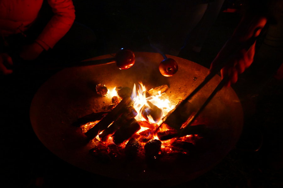 Gemeinsam mit allen Eltern der rund 20 Kids gab es dieses Mal ein großes Lichterfest mit einem schönen Pagodenfeuer sowie verschiedenen anderen Lichtern. Es gab unter anderem die Möglichkeit Kerzen in heißes Wachs zu tauchen und so die Farbe von Weiß auf Rot zu verändern oder verschiedene Laternen zu basteln. Heißer Punsch und leckere Kekse durften natürlich auch nicht fehlen und am Lagerfeuer gab es auch noch Bratäpfel, die die Entdecker an einem Stock über dem Feuer hielten.