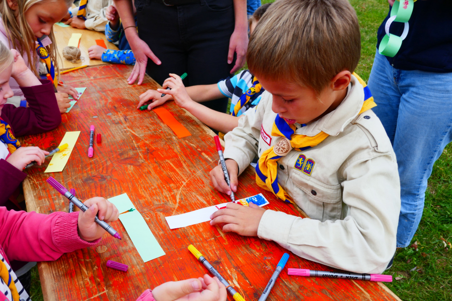 Alle Kinder, die die genannte Obstsorte am Anfang zugeteilt bekamen, mussten nun aufstehen und sich einen neuen Platz suchen. Derjenige, der am Schluss übrig geblieben ist, da er kein Platz mehr gefunden hat muss als Nächster eine Obstsorte sagen. Danach durfte jedes Kind auf einen Zettel malen oder schreiben für was es dankbar ist. Die einzelnen kleinen Zettel haben wir dann zusammen getackert, sodass am Schluss eine große „Dankeskette“ entstanden ist! Anschließend gab es ein paar Snacks und uns wurde eine Geschichte von Punchionello erzählt, in der es darum ging, dass jeder Gaben geschenkt bekommen hat, mit denen wir uns gegenseitig unterstützen können.