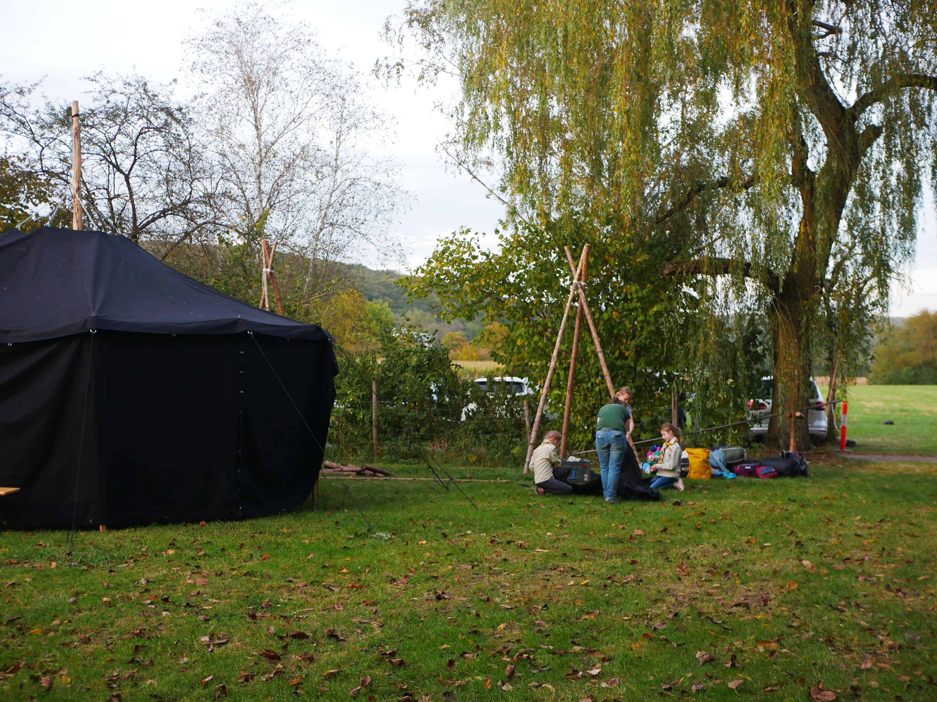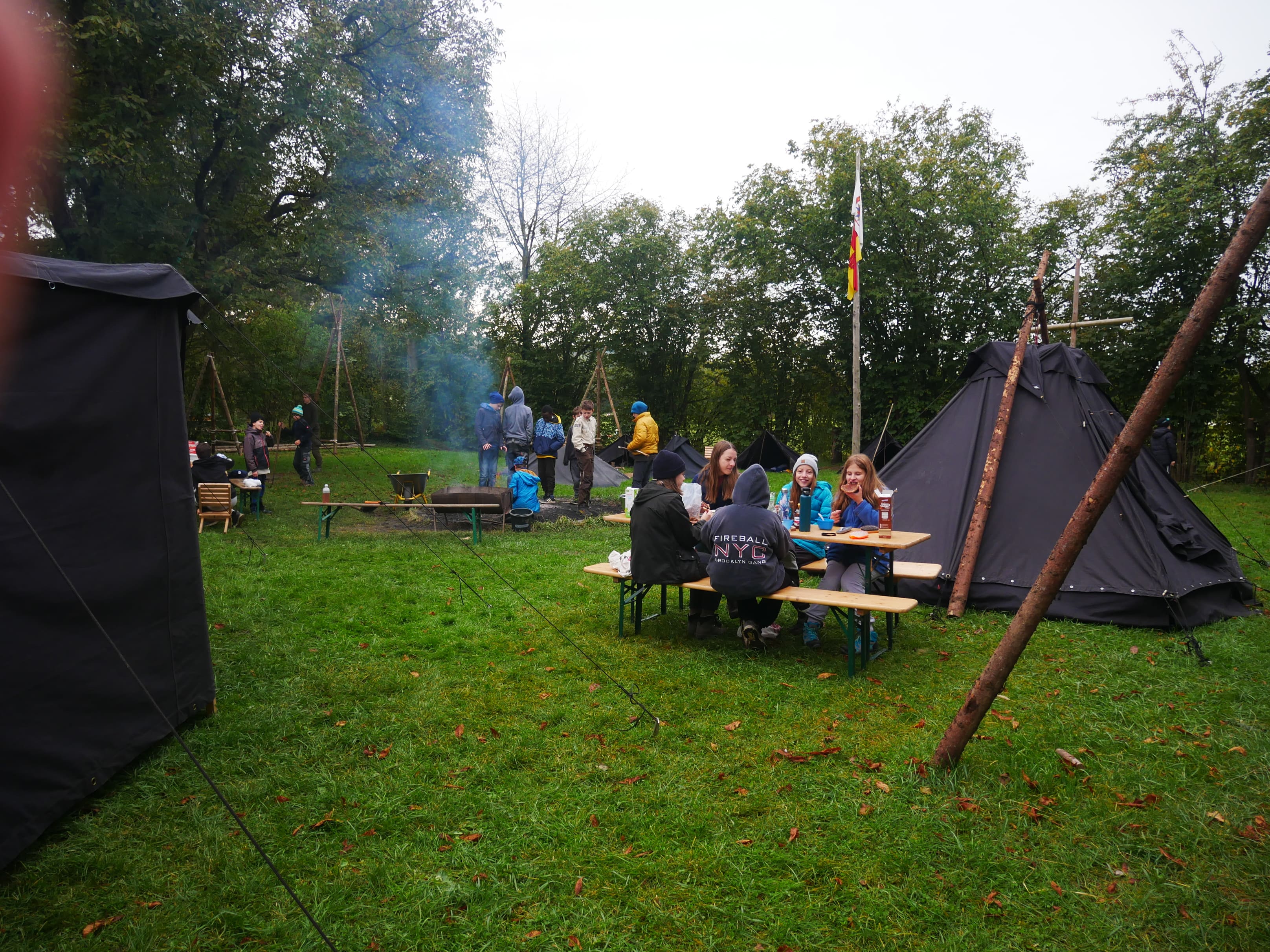 Im Herbst haben alle Altersstufen eine große Aktion - auch die Kundschafter. Im Oktober, wenn die Blätter sich verfärben und die Tage kürzer und kälter werden, findet auf der Rangerwiese eine Übernachtung für die 9-11-jährigen statt. Beim Stammtreff baut jedes Team seine Jurten oder Kohte auf und danach gibt es für alle ein leckeres Abendessen. Am Lagerfeuer wird eine spannende Geschichte erzählt und nach dem Zähneputzen geht es in den warmen Schlafsack. Nach dem Frühstück am nächsten Morgen hat jedes Team eine Zeit für sich wo viele wandern gehen, ihren Platz auf der Rangerwiese erneuern oder Aufgaben im Logbuch machen. Am Nachmittag wird dann das Zelt wieder abgebaut.