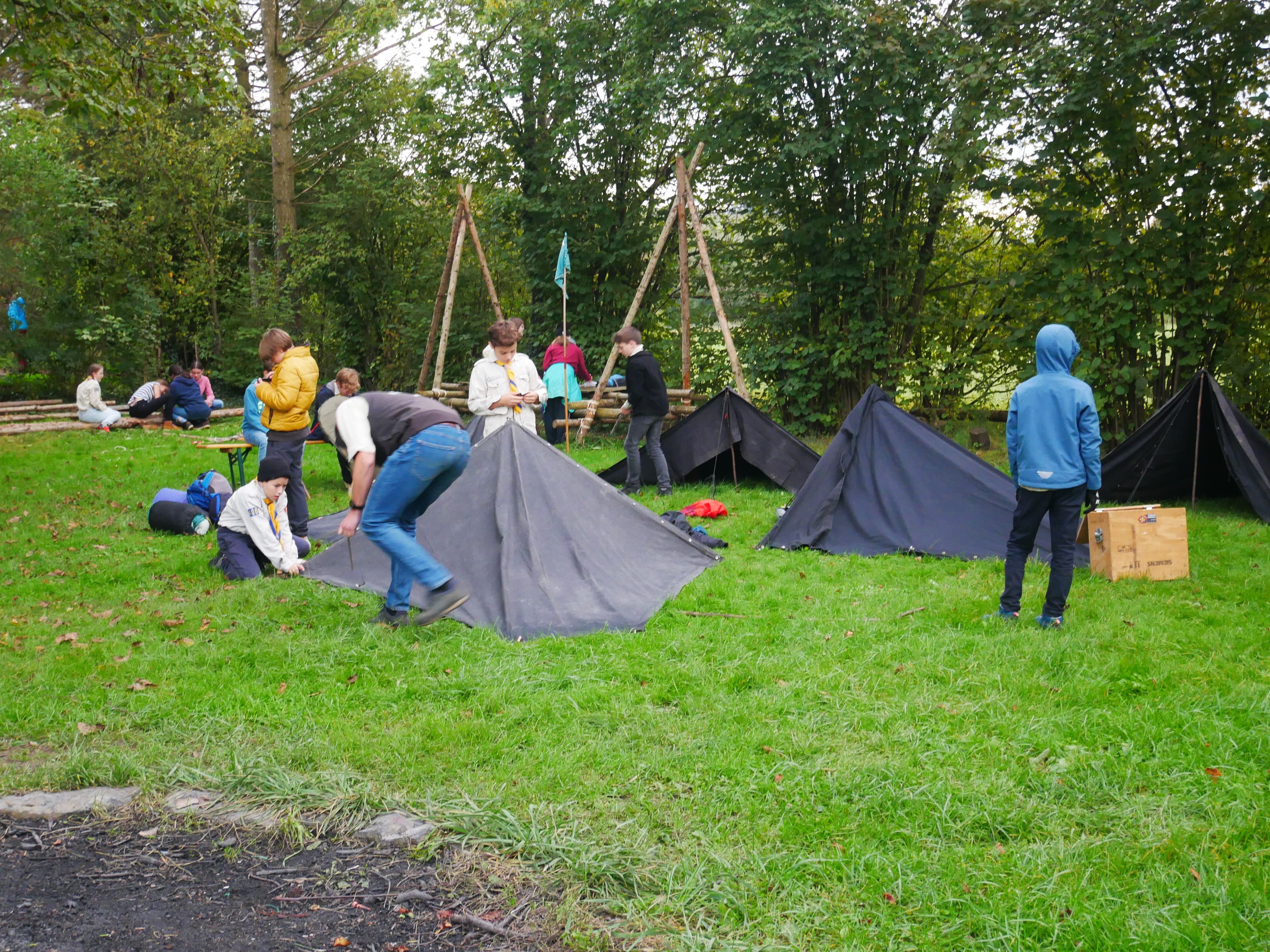 Bevor es im Sommer auf das große Sommercamp geht, gibt es für die Kundschafterstufe noch die Möglichkeit, zu üben. Wie baut man nochmal das Zelt auf? Wie kocht man über offenem Feuer und baut einen Esstisch? All das lernt man auf dem Minicamp das von Freitag bis Samstag über eine Nacht auf der Rangerwiese stattfindet. Für viele Kids ist es das erste Mal das sie auf ein Camp gehen und sind froh es zuvor mal gesehen zu haben. Am Freitag werden die Zelte aufgebaut und nach einer Nacht im Schlafsack und einem leckeren Frühstück gibt es verschiedene Workshops wo die Kids alles zum Thema Camp lernen. Der Abschluss ist dann am Nachmittag mit allen Eltern zusammen, die die Bauten der Kids bestaunen und nebenbei einen leckeren Kaffee und Kuchen genießen können.