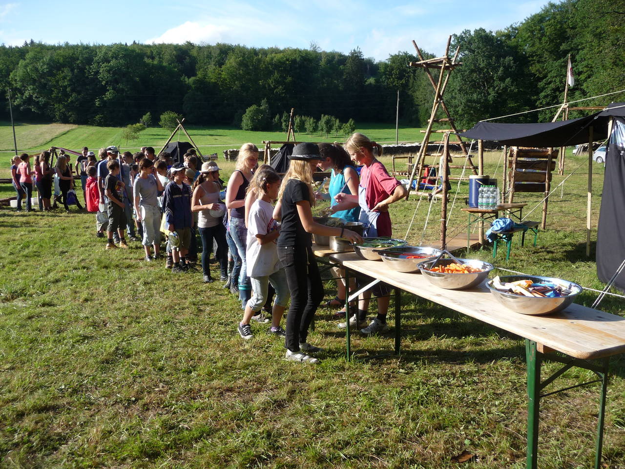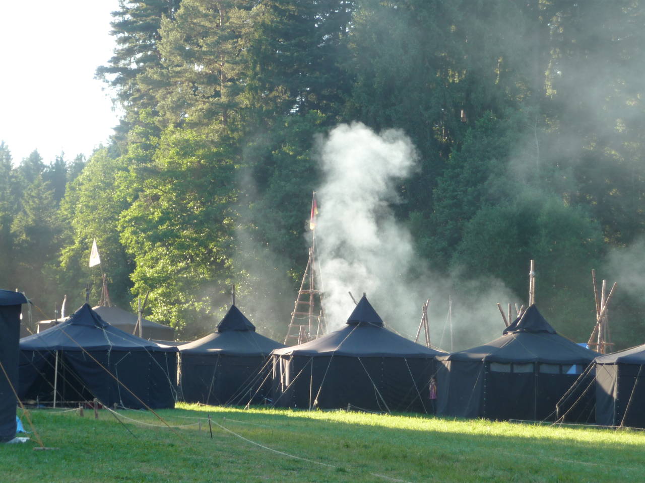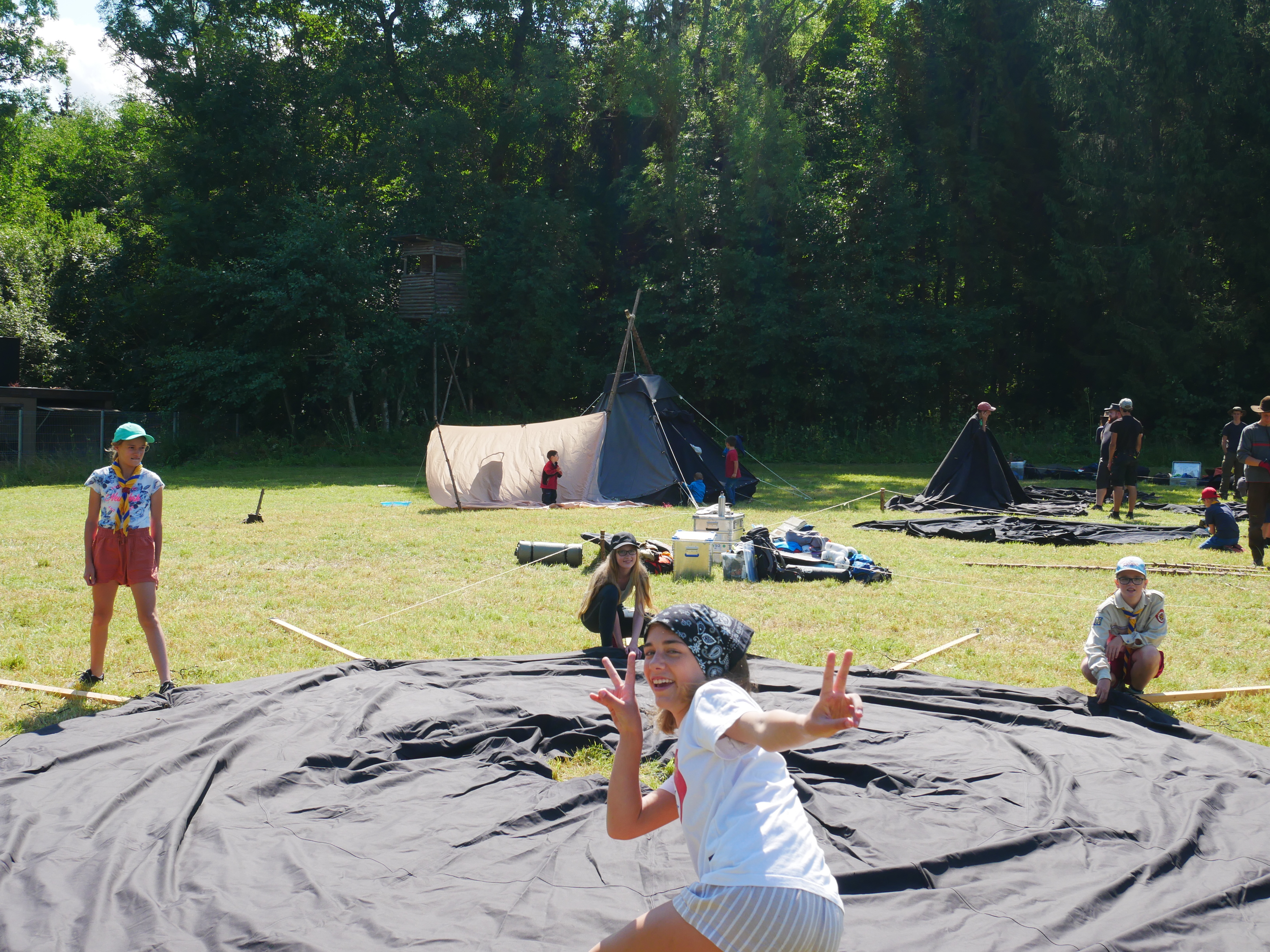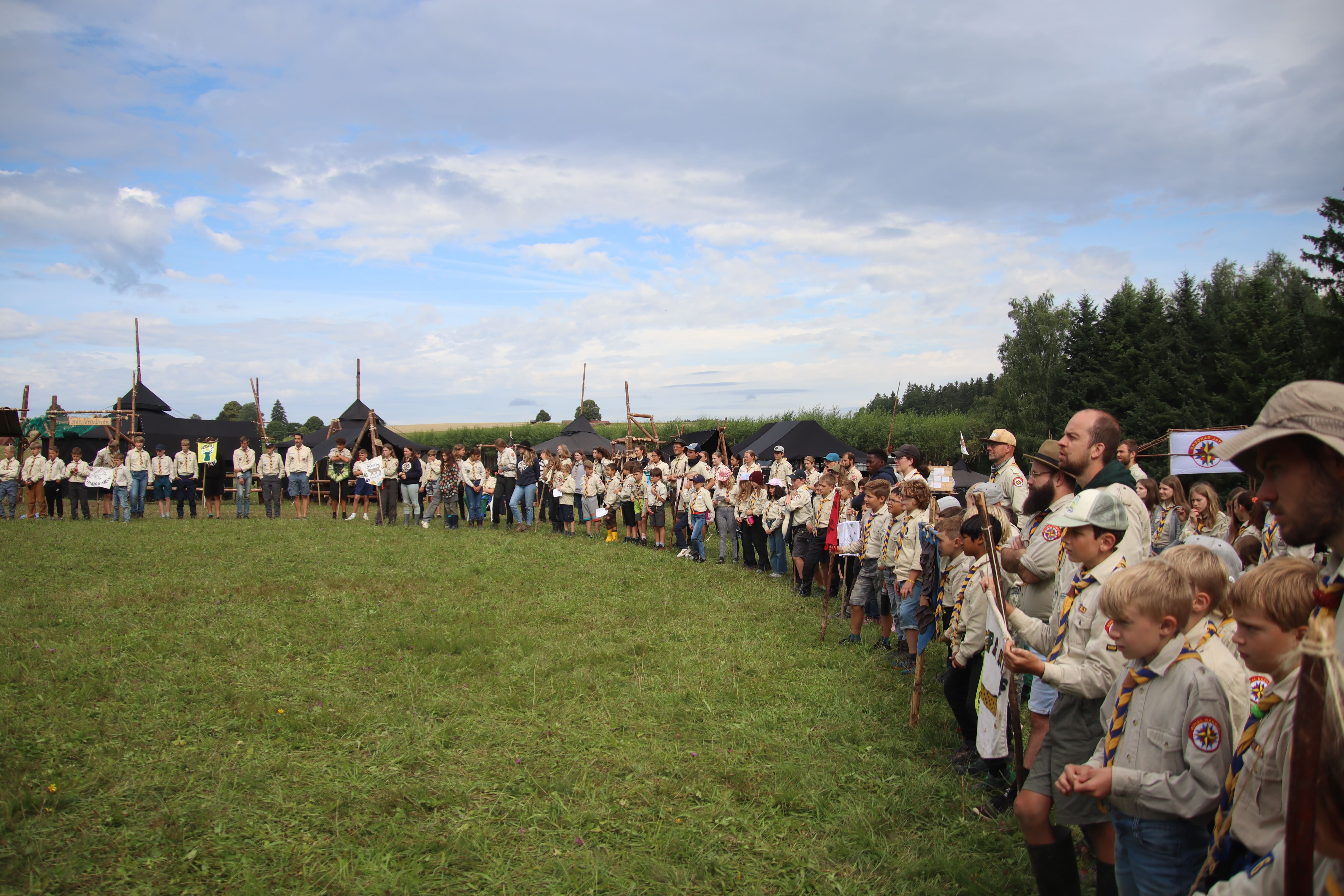 Das Highlight für die Kundschafter- und Pfadfinderstufe ist das Sommercamp. Einmal im Jahr fahren wir zusammen auf eine große Wiese im Schwarzwald oder auf der schwäbischen Alb, schlagen dort unsere Zelte auf und bauen aus Holz einen Esstisch sowie eine Kochstelle und ein Eingangstor zu jedem Teambereich. Das Sommercamp ist oft mit anderen Stämmen zusammen, so das wir immer neue Leute kennen lernen.