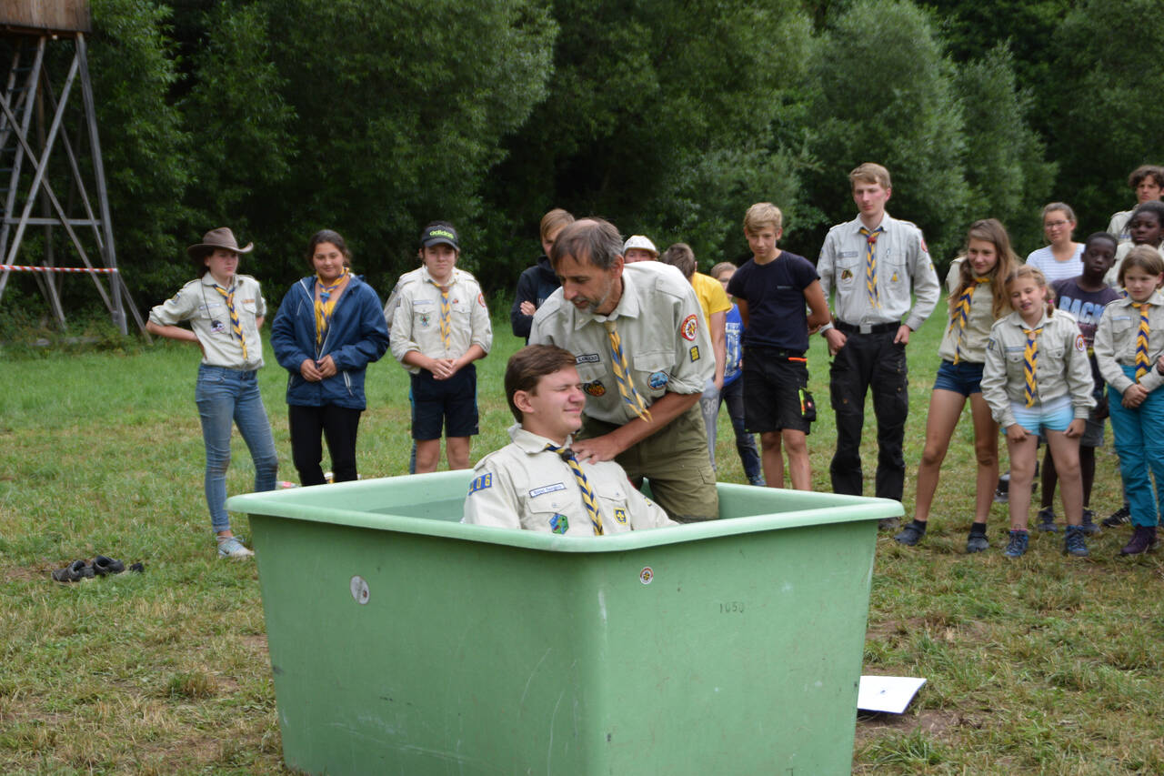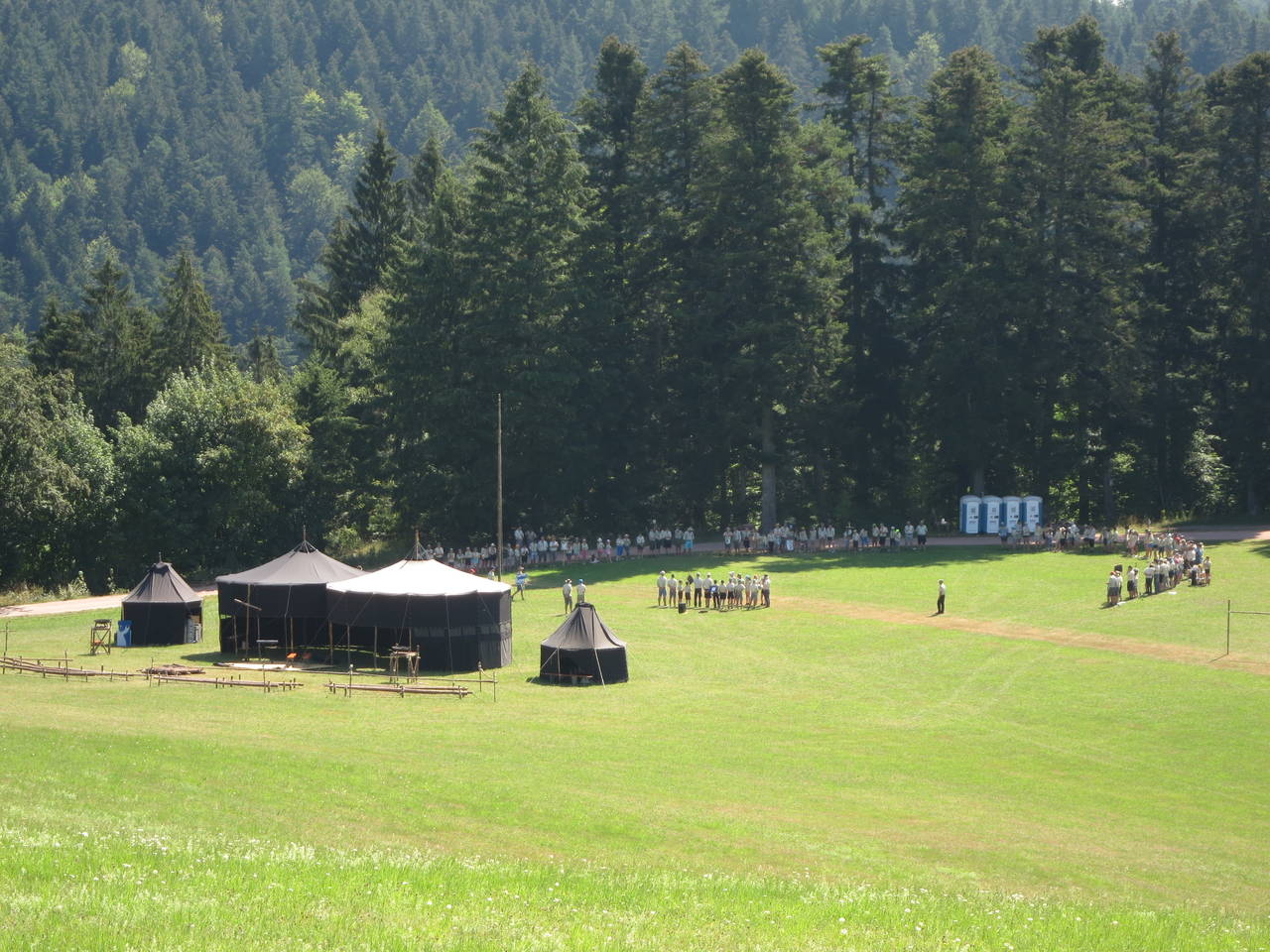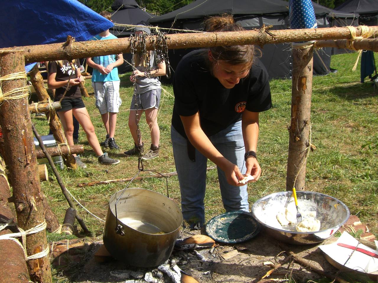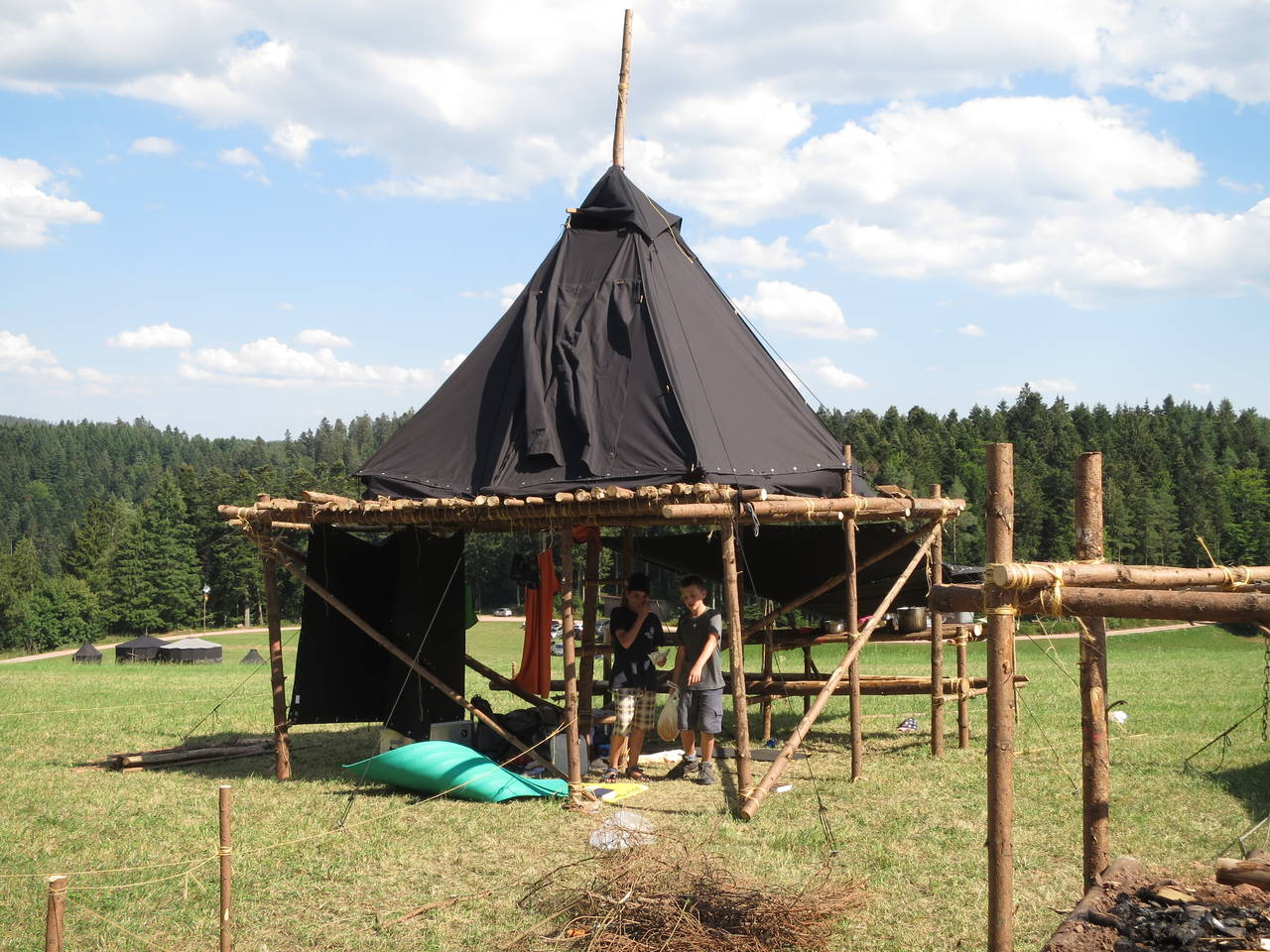 Das Highlight für die Kundschafter- und Pfadfinderstufe ist das Sommercamp. Einmal im Jahr fahren wir zusammen auf eine große Wiese im Schwarzwald oder auf der schwäbischen Alb, schlagen dort unsere Zelte auf und bauen aus Holz einen Esstisch sowie eine Kochstelle und ein Eingangstor zu jedem Teambereich. Das Sommercamp ist oft mit anderen Stämmen zusammen, so das wir immer neue Leute kennen lernen.