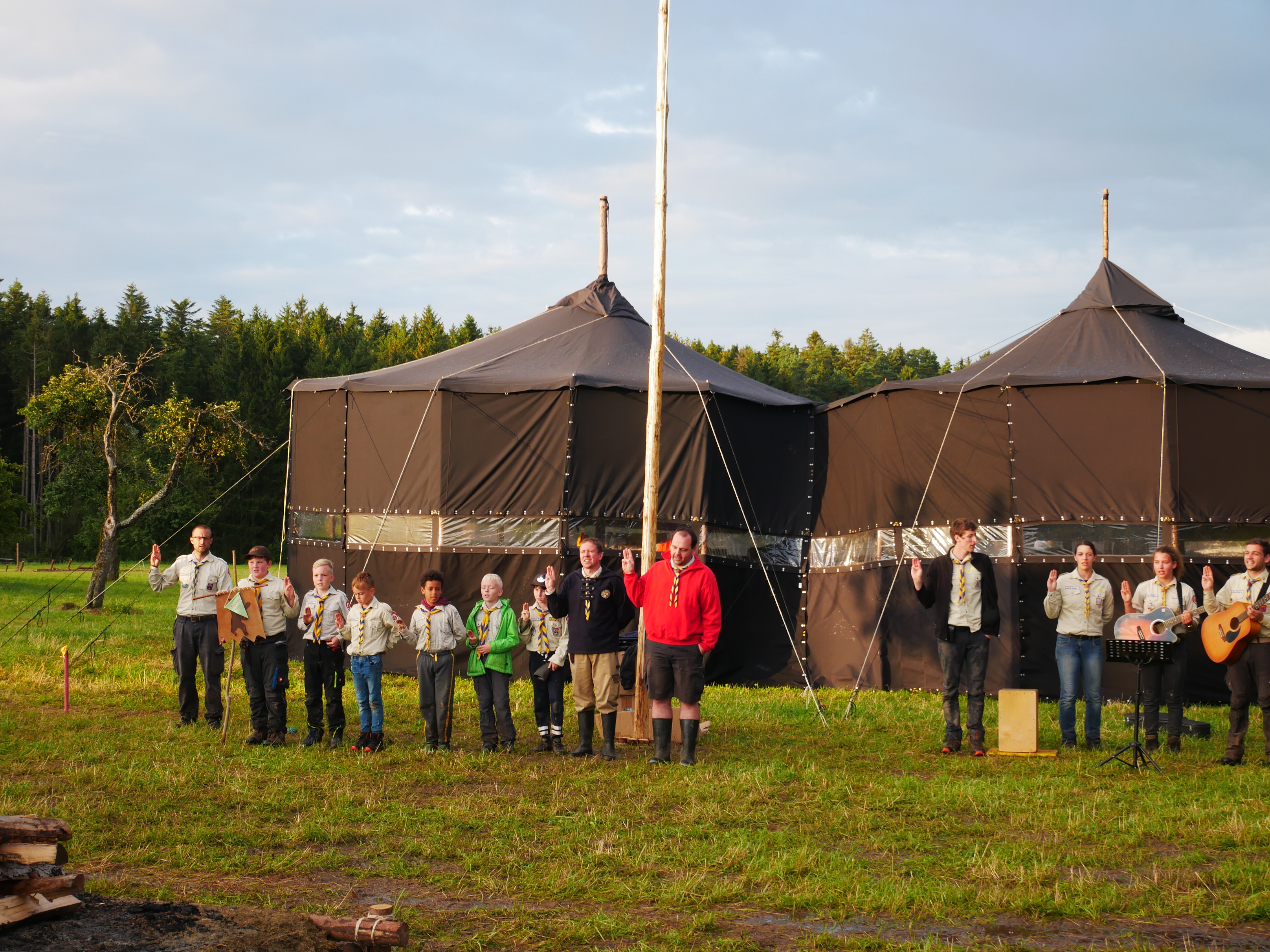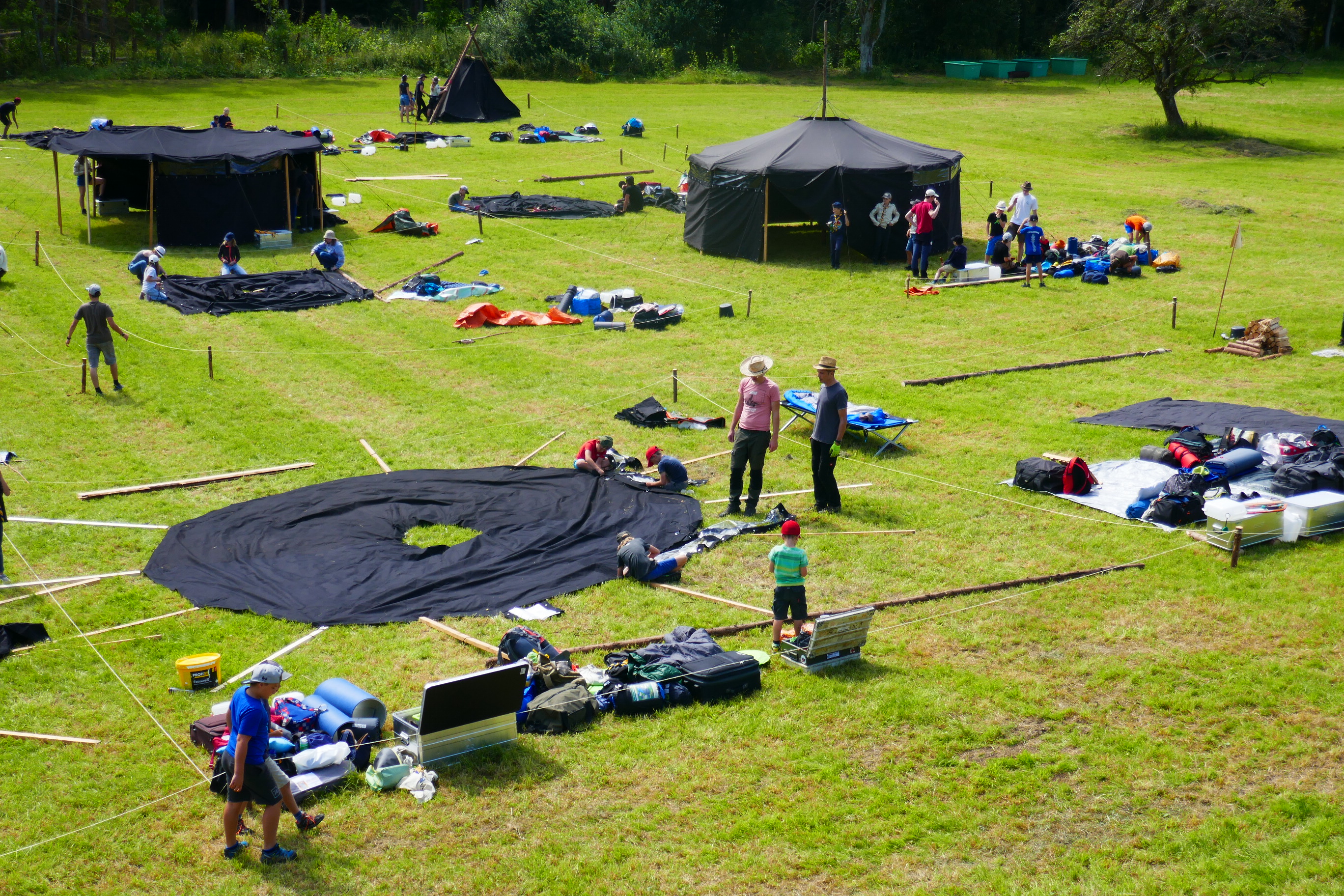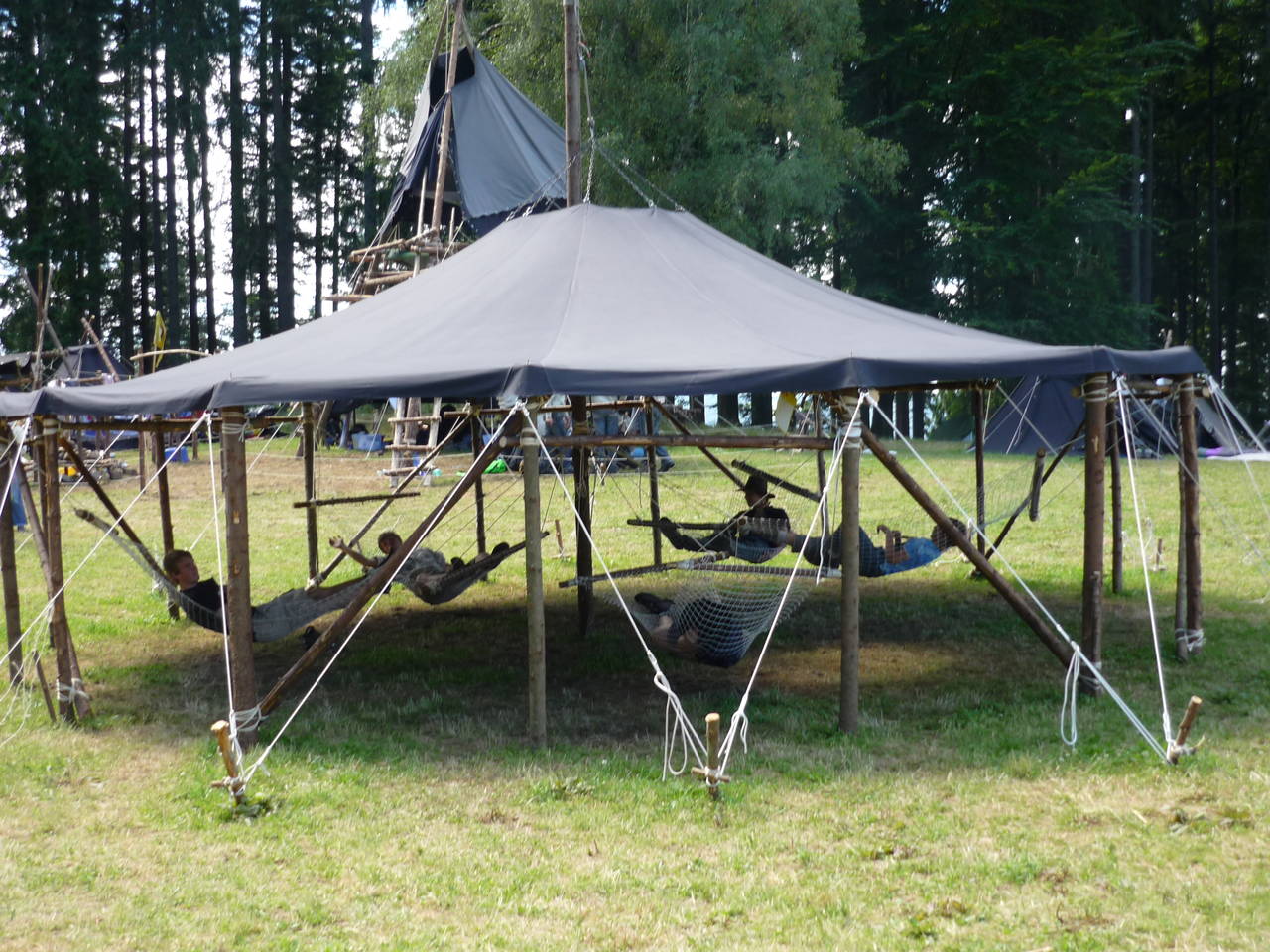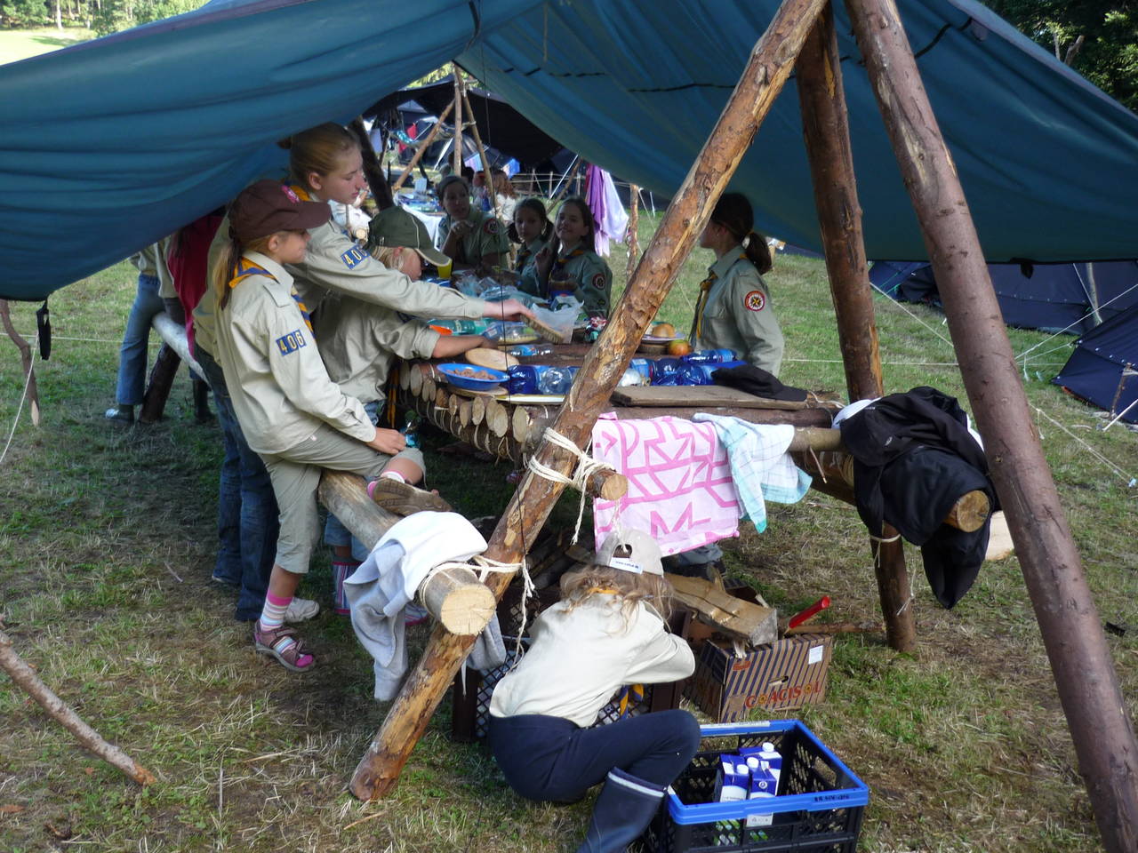 Das Highlight für die Kundschafter- und Pfadfinderstufe ist das Sommercamp. Einmal im Jahr fahren wir zusammen auf eine große Wiese im Schwarzwald oder auf der schwäbischen Alb, schlagen dort unsere Zelte auf und bauen aus Holz einen Esstisch sowie eine Kochstelle und ein Eingangstor zu jedem Teambereich. Das Sommercamp ist oft mit anderen Stämmen zusammen, so das wir immer neue Leute kennen lernen.